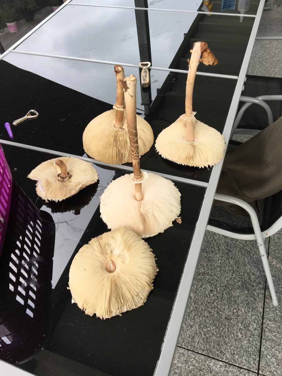 Bei den anderen könnte könnte sich was eingeschlichen haben. Rötet ein Stiel? Fällt dir geruchlich was auf. Ich bin ja auch so ein Phobiker - besonders bei Parasolen und Perlpilzen. Und versteh dich deshalb.