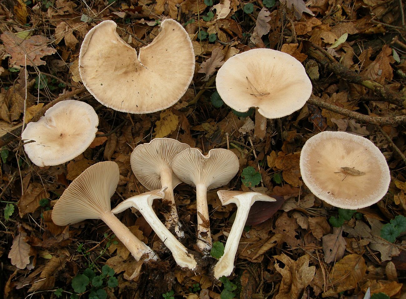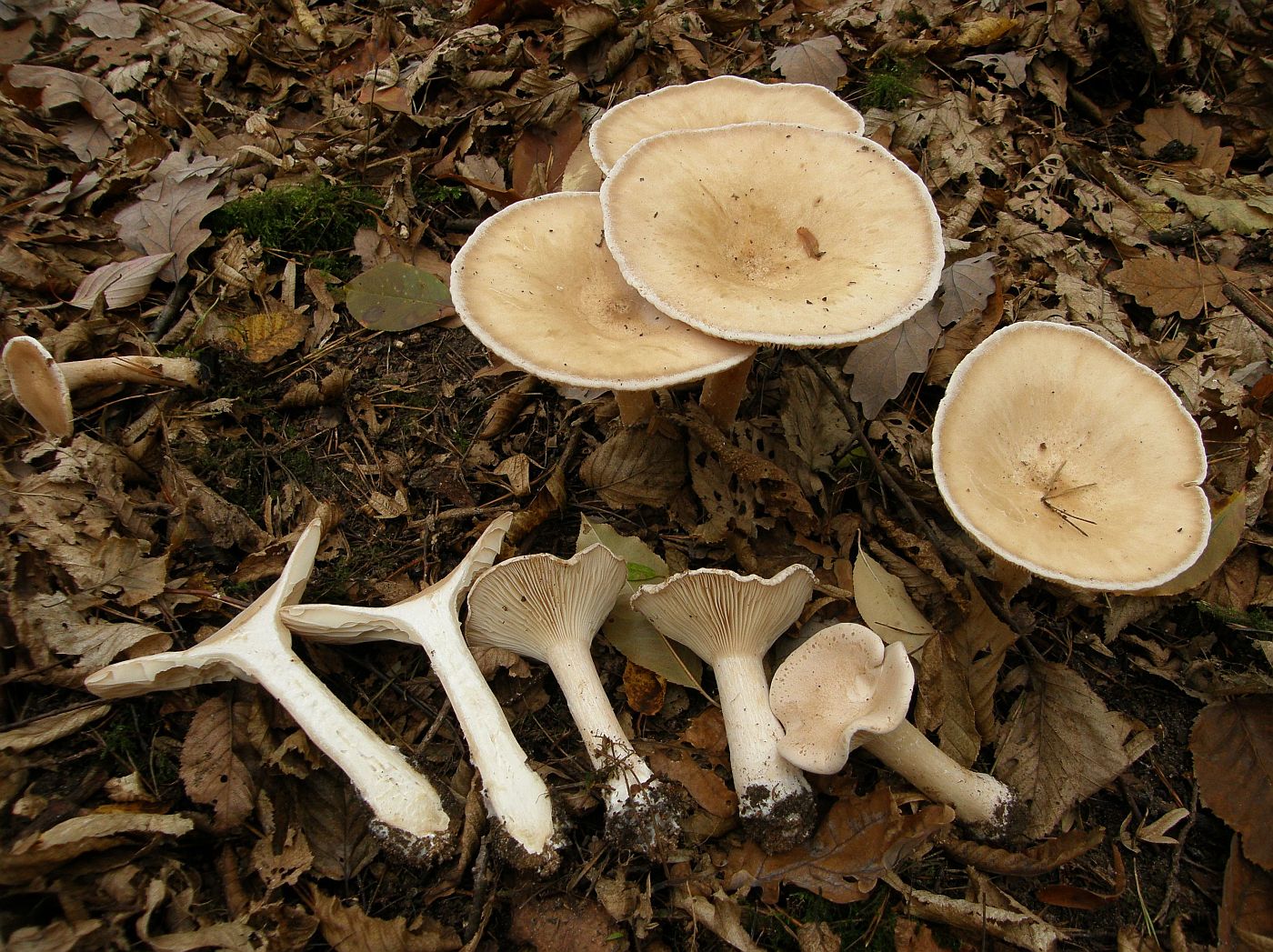 Mönchsköpfe gibt es mit und ohne Hutbuckel. Genau wie bei der wesentlich kleineren Nachbarart (Clitocybe / Ampulloclitocybe gibba).