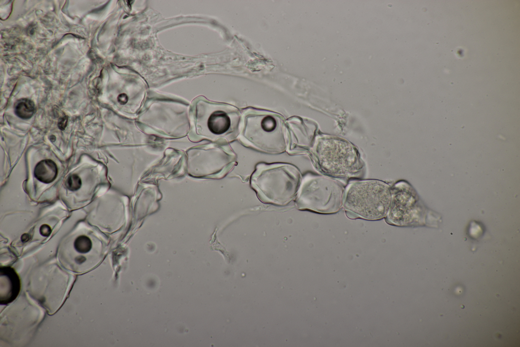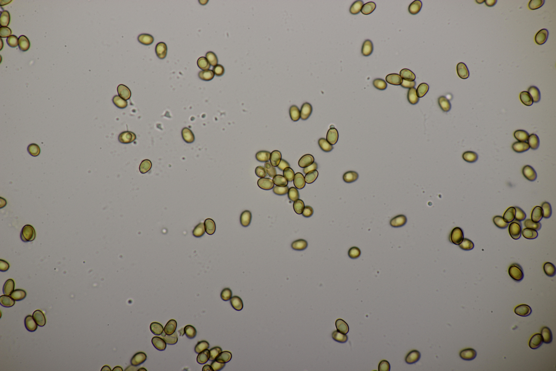 2. Paxillus rubicundus agg. unter Alnus sp. Sporengröße: (6.3 +- 0.4) µm x (4.3 +- 0.2) µm