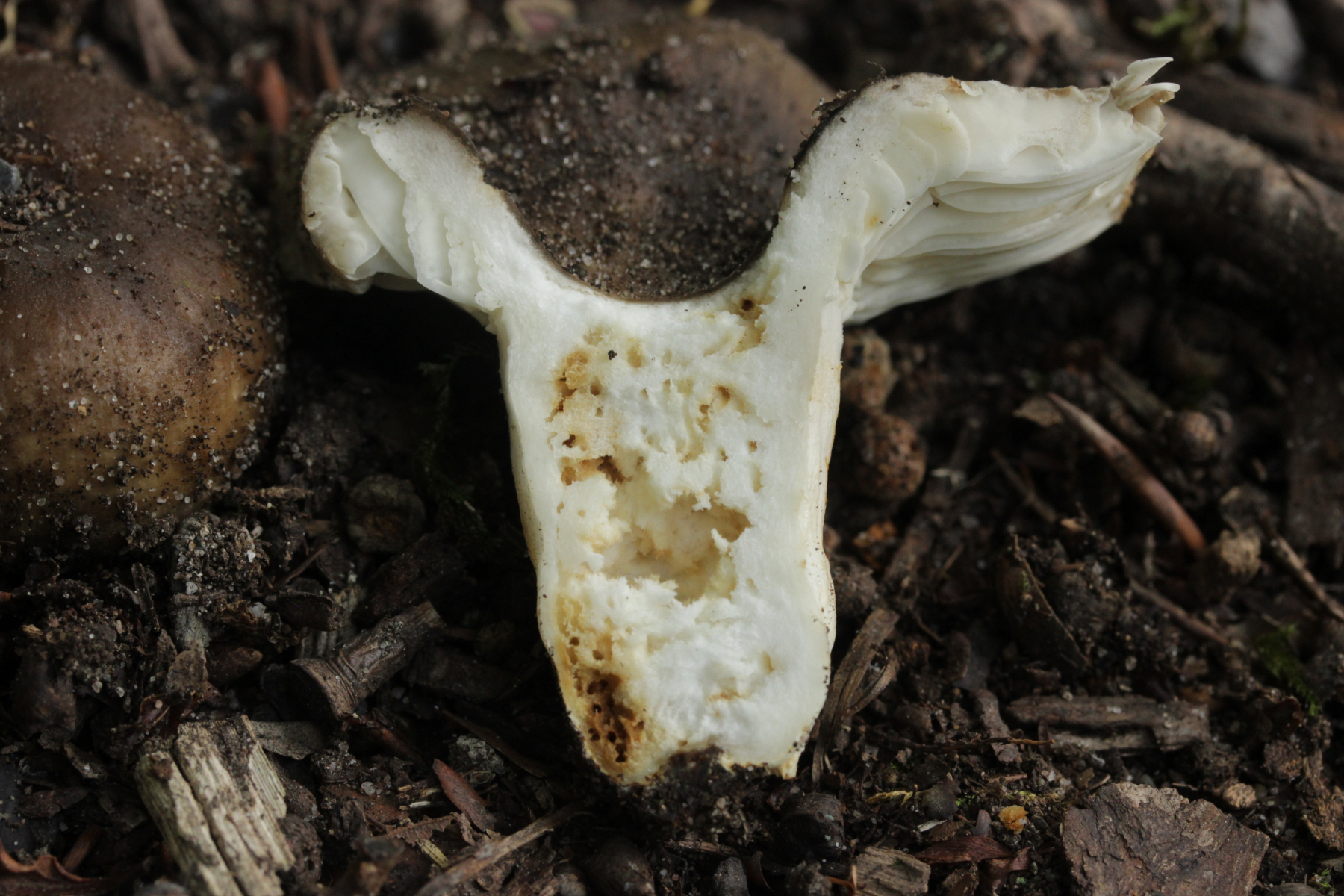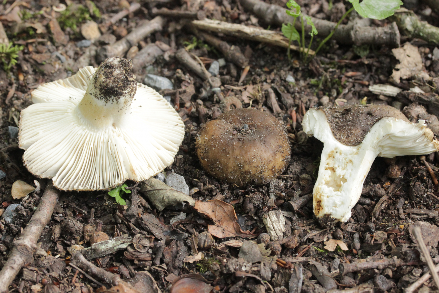 3. Russula sp. Ich hatte hier ja erstmal an eine Compactae gedacht, aber dafür paßt entweder die Hutfarbe nicht, oder das Röten/Schwärzen fehlt. An Begleitbäumen gab es in erster Linie Buche, wobei ich aber auch Eiche und Hainbuche nicht ausschließen kann. Geschmack mild. Sporenpulver IIb