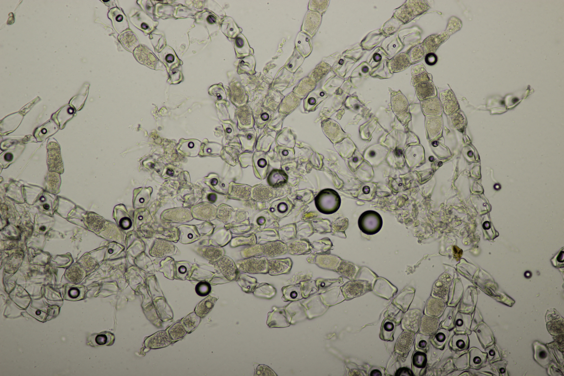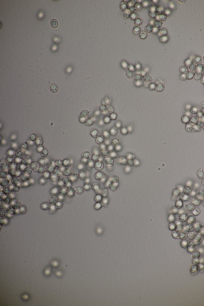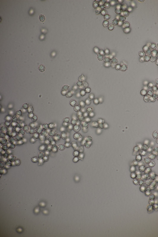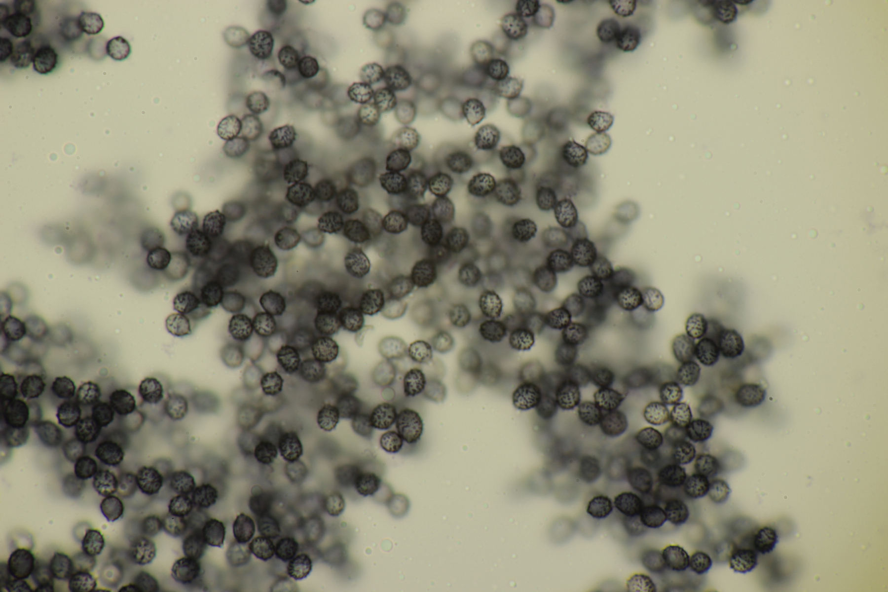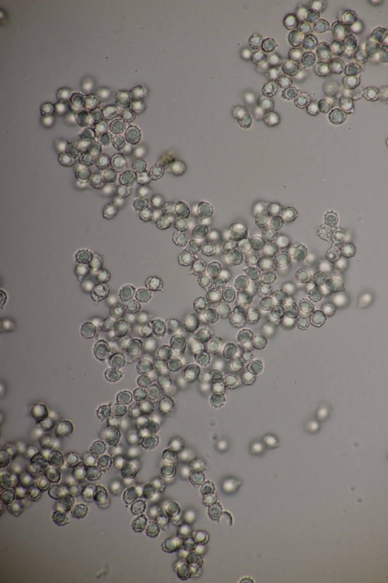 Sporengröße (6.1 +- 0.3) µm x (5.1 +- 0.3) µm