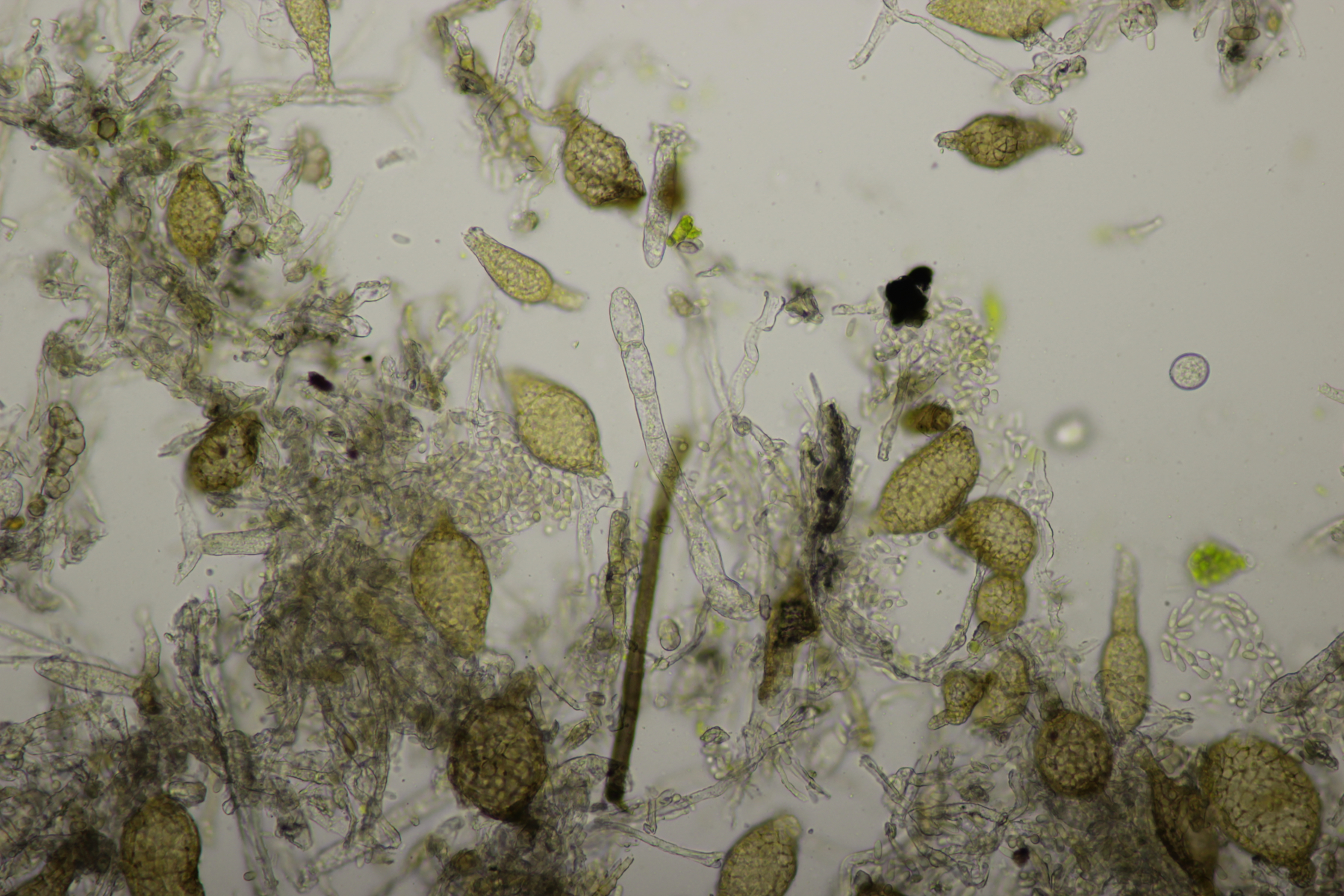 heute war der APR auf einer Exkursion an der Halde Lipper Höhe in Marl. Ich hatte ja befürchtet, daß es dort sehr trocken sein würde und wir keinen einzigen größeren Pilz finden würden, aber in einem Wäldchen am Fuße der Halde gab es dann doch genügend Feuchtigkeit, so daß wir etliche Röhrlinge und Täublinge finden konnten. Letztere sporen gerade noch aus, deshalb fehlen da noch entsprechende Mikrobilder, die werden aber später ergänzt.
