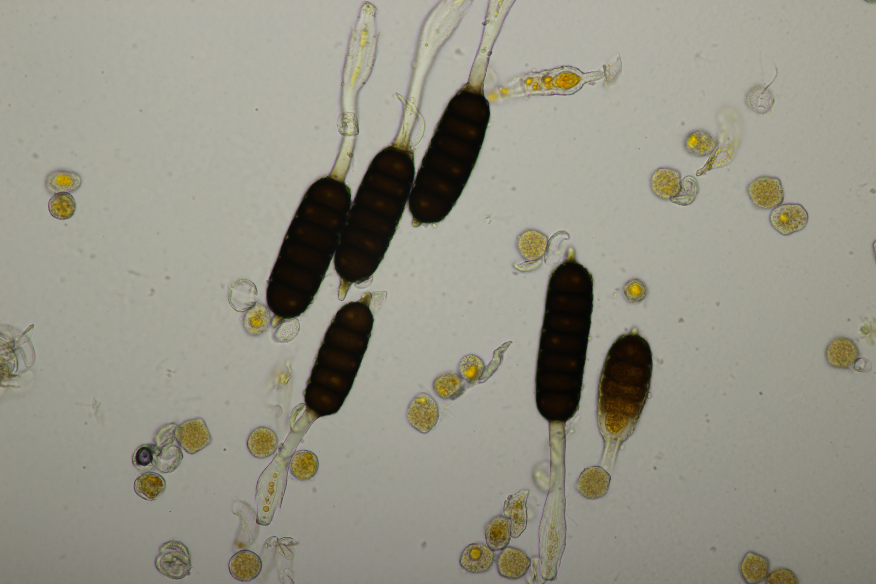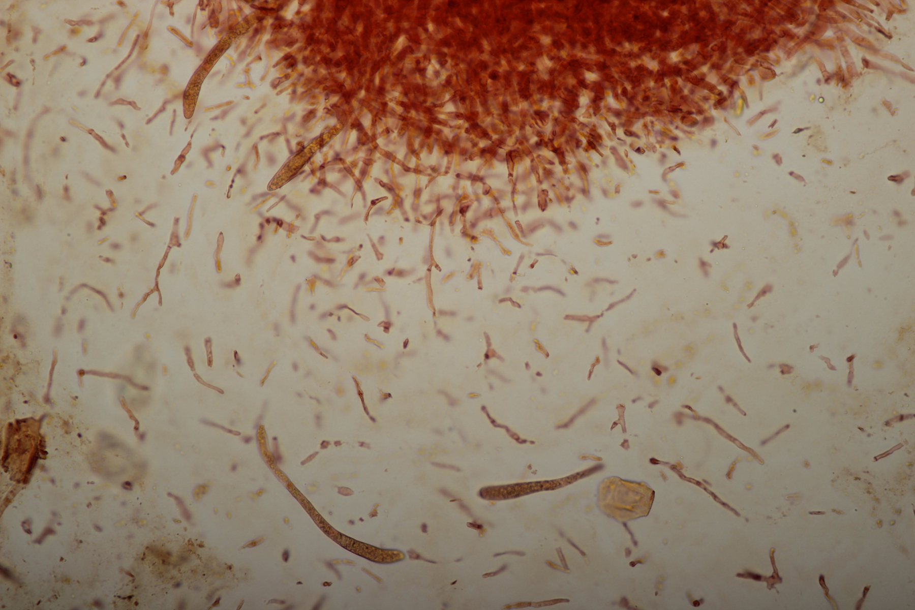heute war der APR auf einer Exkursion an der Halde Lipper Höhe in Marl. Ich hatte ja befürchtet, daß es dort sehr trocken sein würde und wir keinen einzigen größeren Pilz finden würden, aber in einem Wäldchen am Fuße der Halde gab es dann doch genügend Feuchtigkeit, so daß wir etliche Röhrlinge und Täublinge finden konnten. Letztere sporen gerade noch aus, deshalb fehlen da noch entsprechende Mikrobilder, die werden aber später ergänzt.