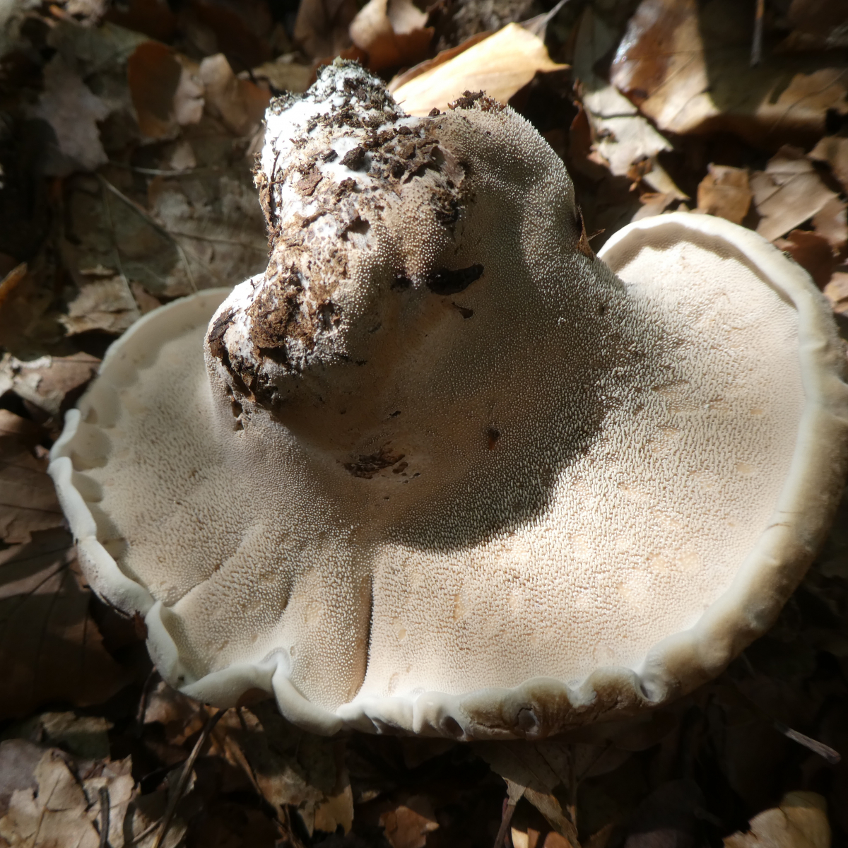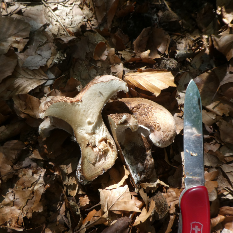 diese Pilze, es standen noch einige ganz kleine da, fand ich heute im Altmühltal am Rande eines Halb-Trockenrasenhanges aber bereits im Wald. (Auf dem Halbtrockenrasenhang wachsen zwar vor allem kalkliebende Pflanzen aber auch Pflanzen, die zumindest einen leicht sauren Boden bevorzugen.) Dort in diesem Eck in dem ich die Pilze fand, wachsen vor allem Rotbuchen, aber auch Fichten, Eichen, Kiefern, usw. munter durcheinander und wahrscheinlich noch so manch anderer Baum. An einen speziellen Geruch kann ich mich nicht erinnern aber bei der Masse der heutigen Pilze die ich beschnupperte bin ich mir da jetzt ehrlich gesagt nicht mehr so ganz sicher - sorry. Bitte, welcher Stacheling, ich hoffe es ist einer, ist dies?