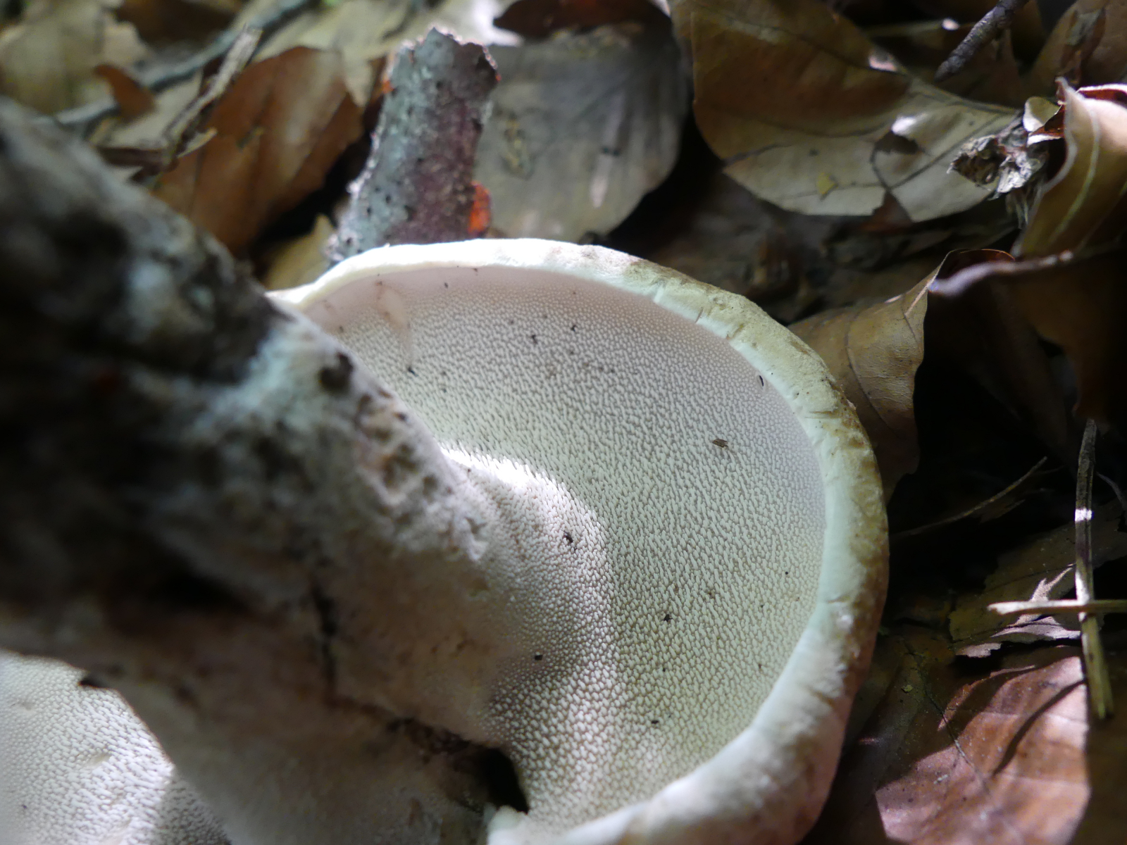 Nach dem Ausschlussverfahren, Maria und ich haben im Exkursionsfahrzeug auch kurz durchgeschlüsselt, bleiben Sarcodon leucopus und die beiden "Literatur-Phantome" Sarcodon underwoodii (nach OTTO 1997) und Sarcodon laevigatus (nach MAAS-GEESTERANUS 1968).