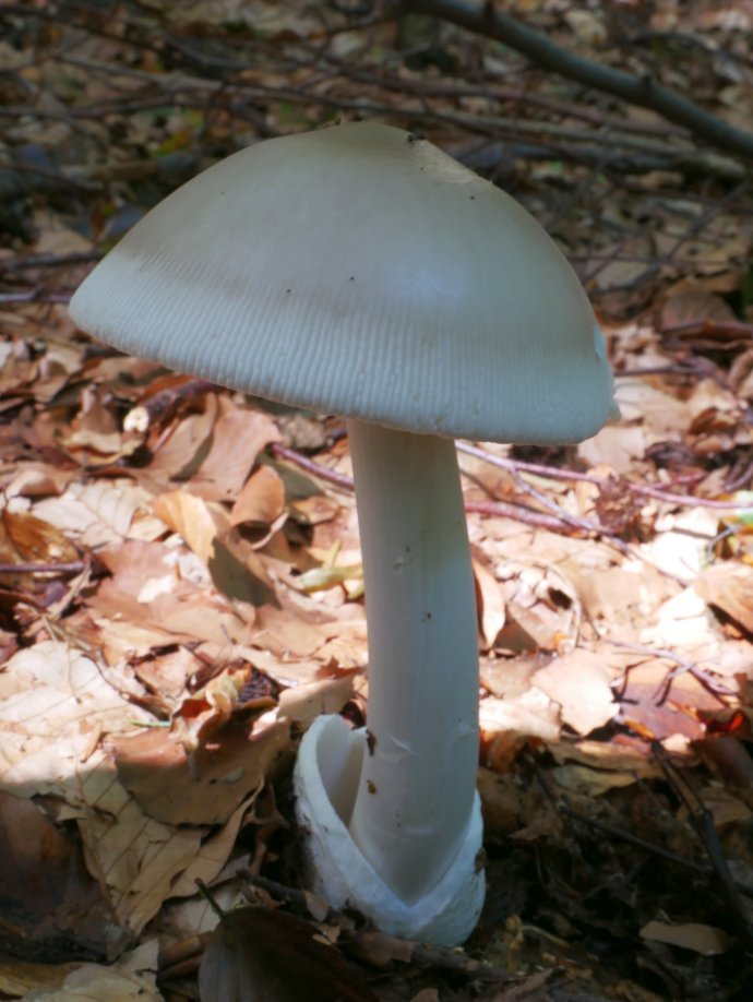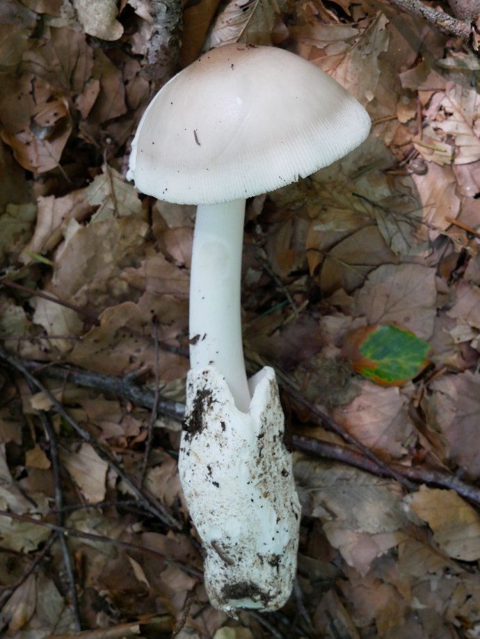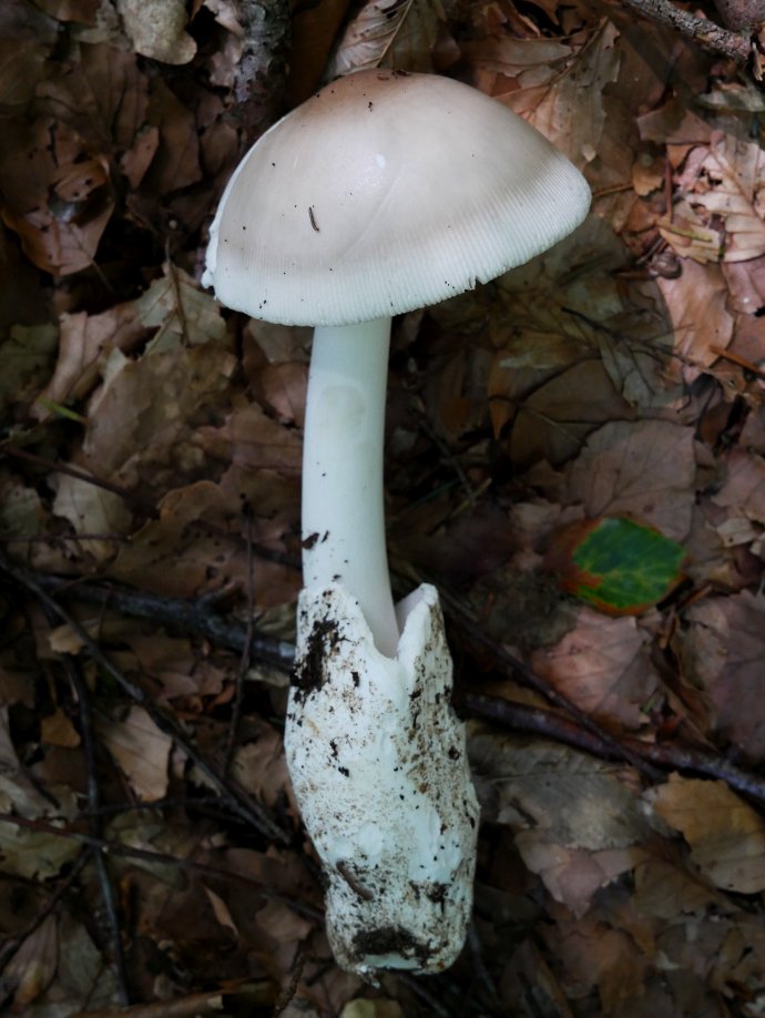 Amanita mairei, Silbergrauer Scheidenstreifling , unter Eiche