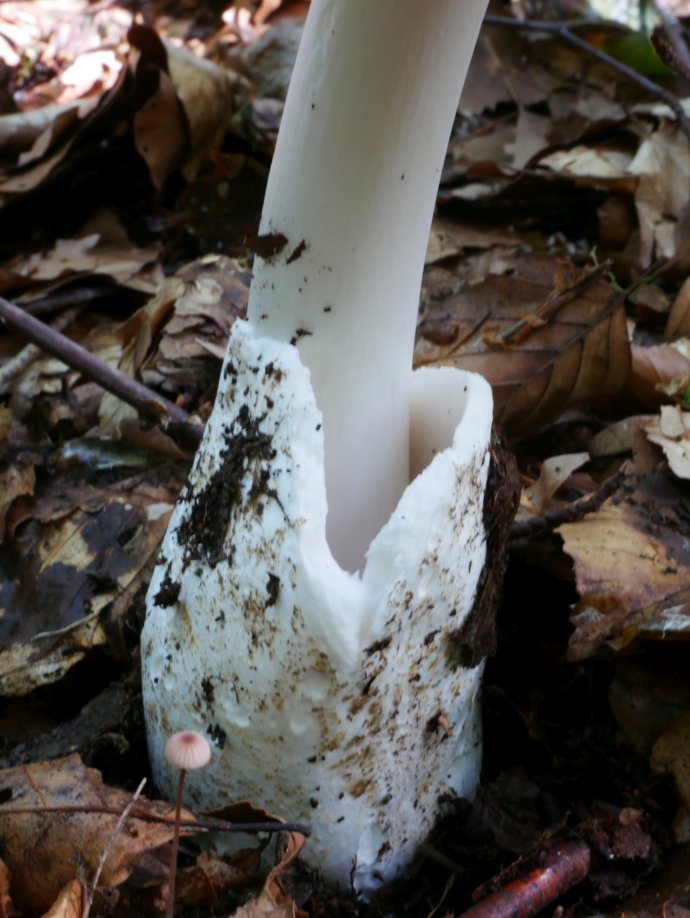 Auffallend die hochgezogene und bis zu 4mm Dicke Scheide und ein absolut glatter nicht genatterter Stiel