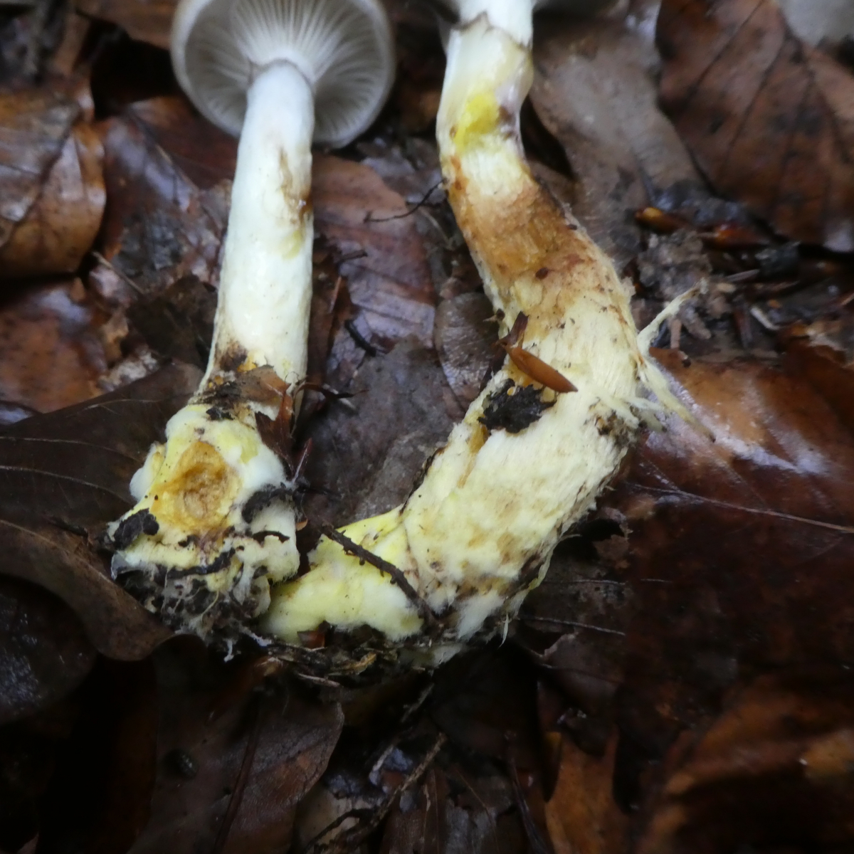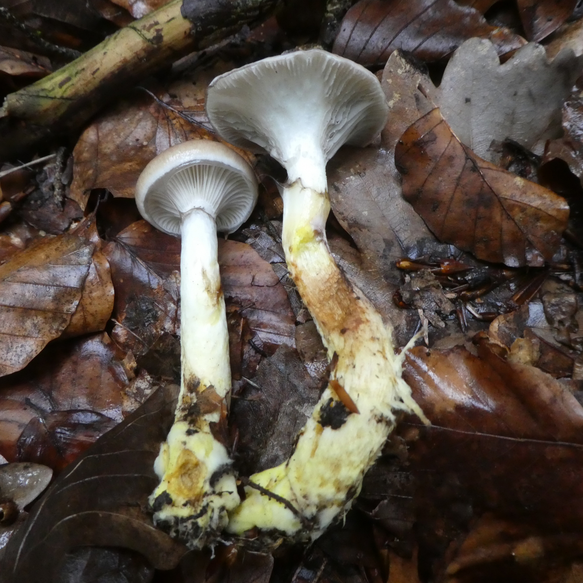 Trockenrasen und Waldrand - die Pilze waren relativ klein, vielleicht 3 - 4 cm im Hutdurchmesser. Vielleicht wurzelnder Scleimrübling?