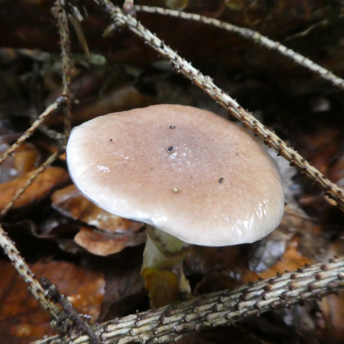 Trockenrasen und Waldrand - die Pilze waren relativ klein, vielleicht 3 - 4 cm im Hutdurchmesser. Vielleicht wurzelnder Scleimrübling?