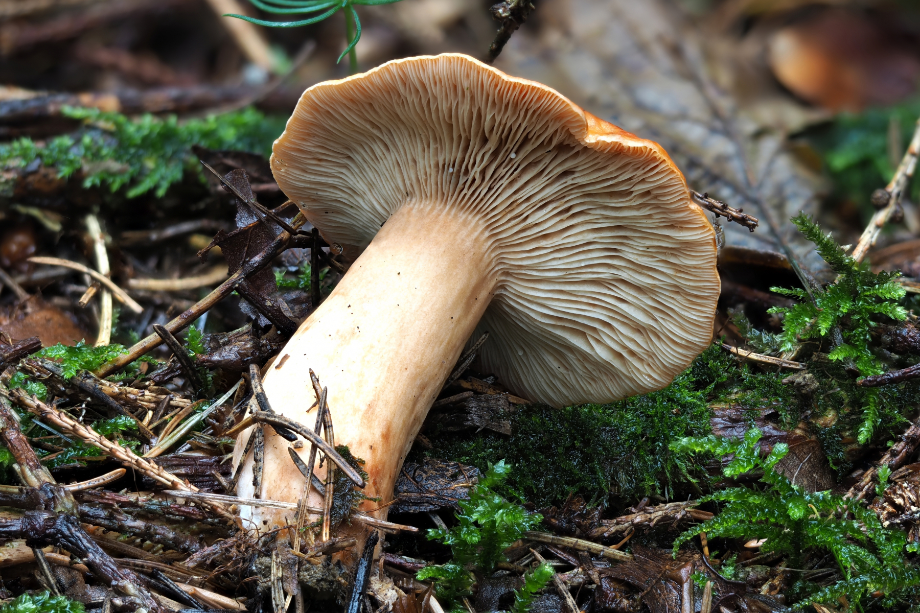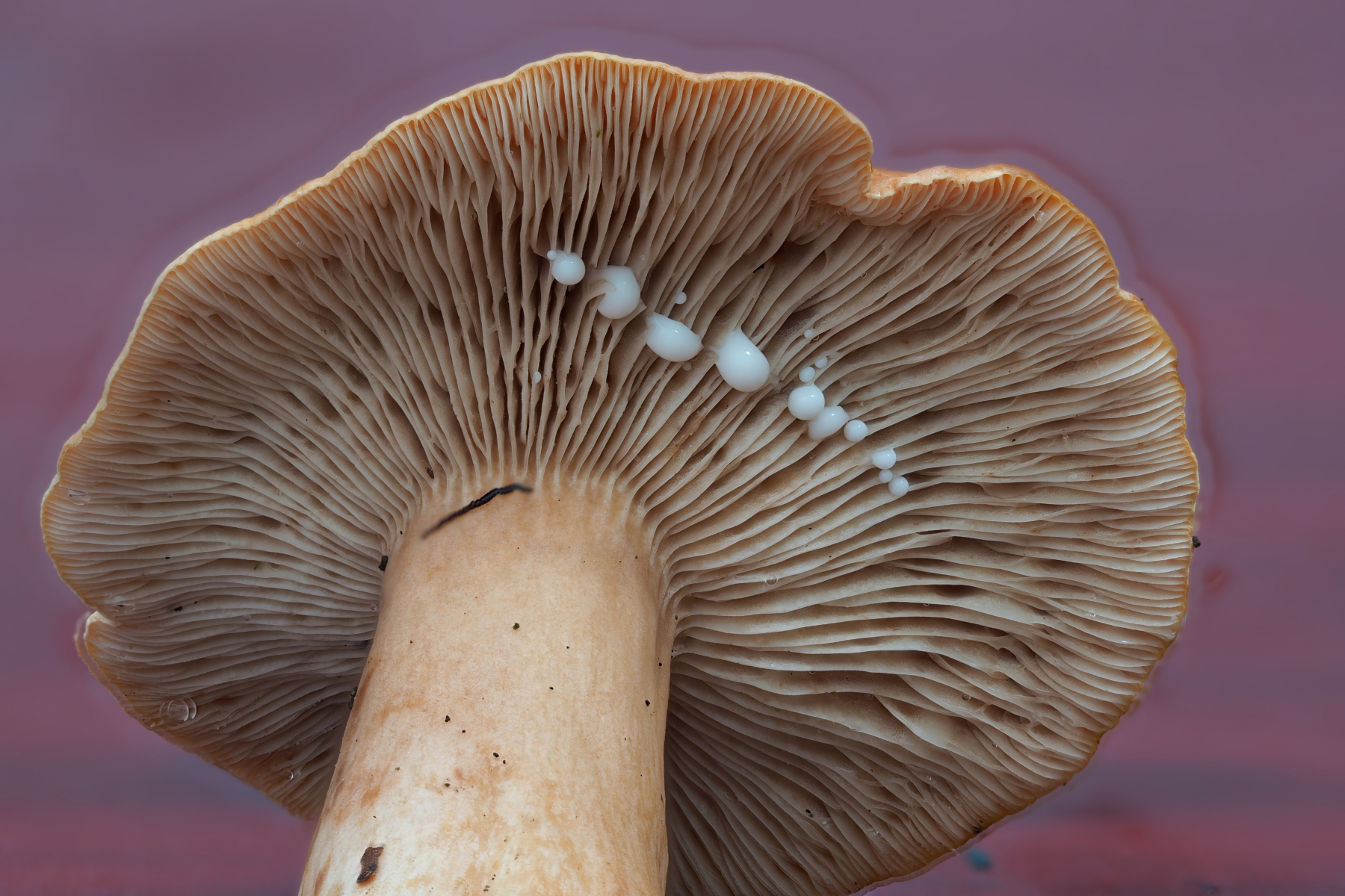 Milch weiß, beim eintrocknen auf den Lamellen braun
