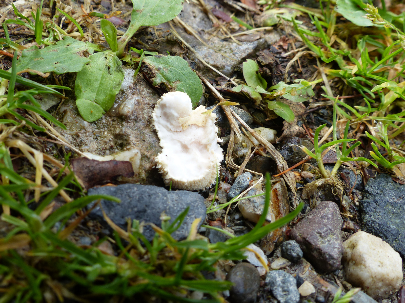 Er wuchs auf dem Weg und ist etwa so groß wie ein 1 Cent Stück. Ich hatte das Gefühl, dass er direkt aus der Erde kam. Es sah aus, als wäre es Lehmboden. Viele Steine drumherum. Konsistenz ist eher lederartig. Geruch neutral. An der Unterseite nachgiebige, kleine Stacheln.