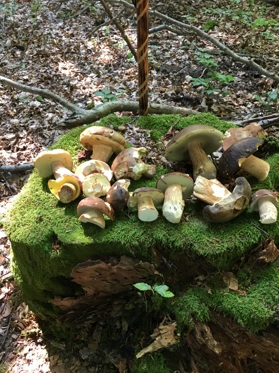 mit mir eine Pilztour gehen, sie dürfe aber auf keinen Fall zu schwierig oder anstrengend sein, die Hitze würde er auch schlecht vertragen!! Wir waren gestern, auf einer fast Rollator gerechten Strecke, total Sonnen abgeschirmt, der Parkplatz 5 Minuten vom Wald entfernt, für 3 Stunden (mit Sitzpausen) unterwegs! Fazit: Kollege glücklich - Steinpilze +3 Schwarzhäuptige + 1 Anhängsel Röhrling (eigentlich geschützt,von ihm irrtümlich entnommen) Mahlzeit gerettet, alles gut? Großzügig betrachtet ja - im ökonomisch/ökologischem Sinne, totaler Unsinn?
