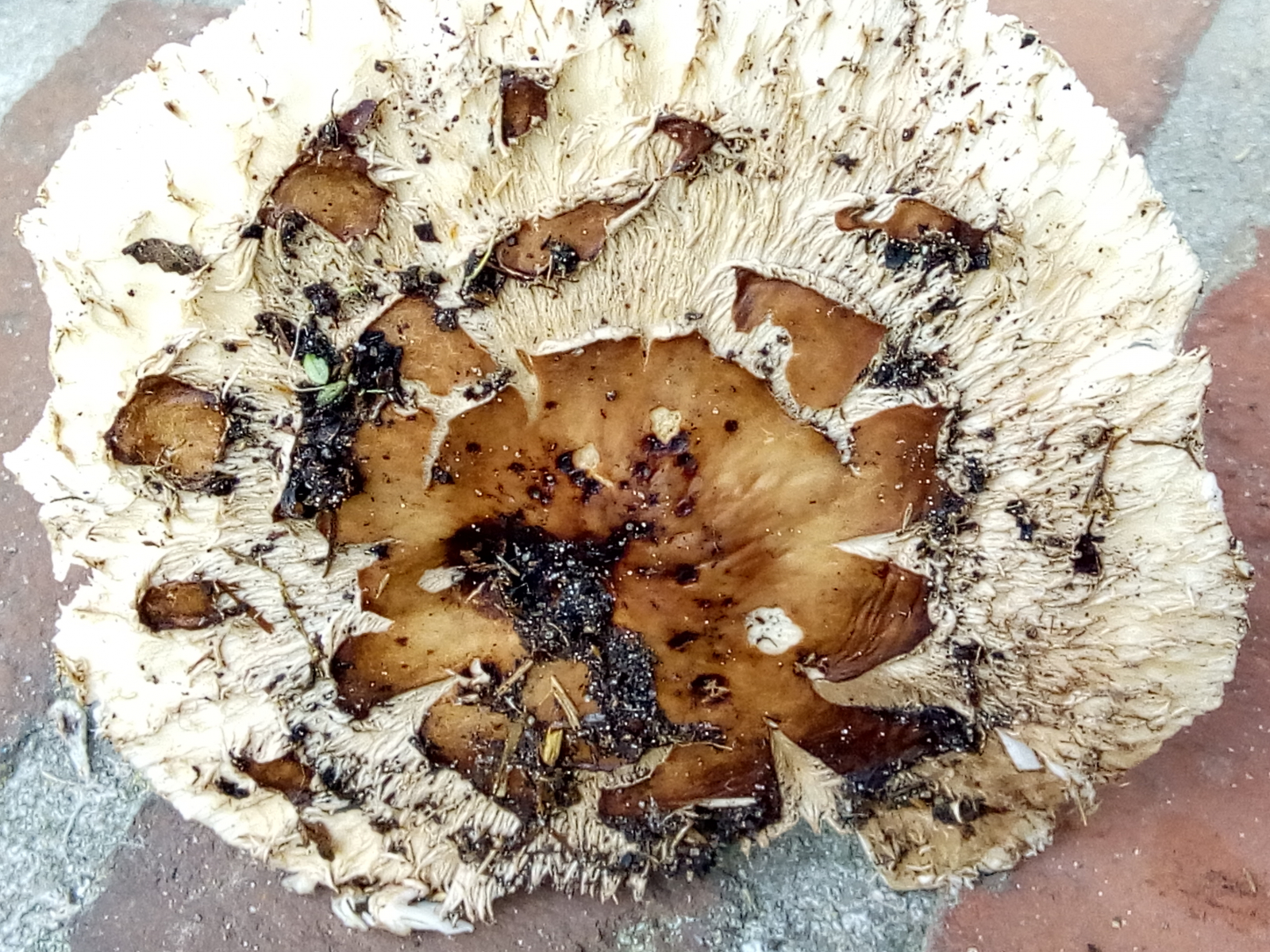 Also die Pilze, die ich bisher als "Chlorophyllum brunneum s.l." angesprochen habe, hatten eigentlich nie einen deutlich doppelten Ring - aber eben sehr wohl einen komplexen, also zumindest am Stiel mit mehr als einer Schicht, die aber nir zu einem zweiten vollständigen "Keks" ausgeprägt gewesen wäre.