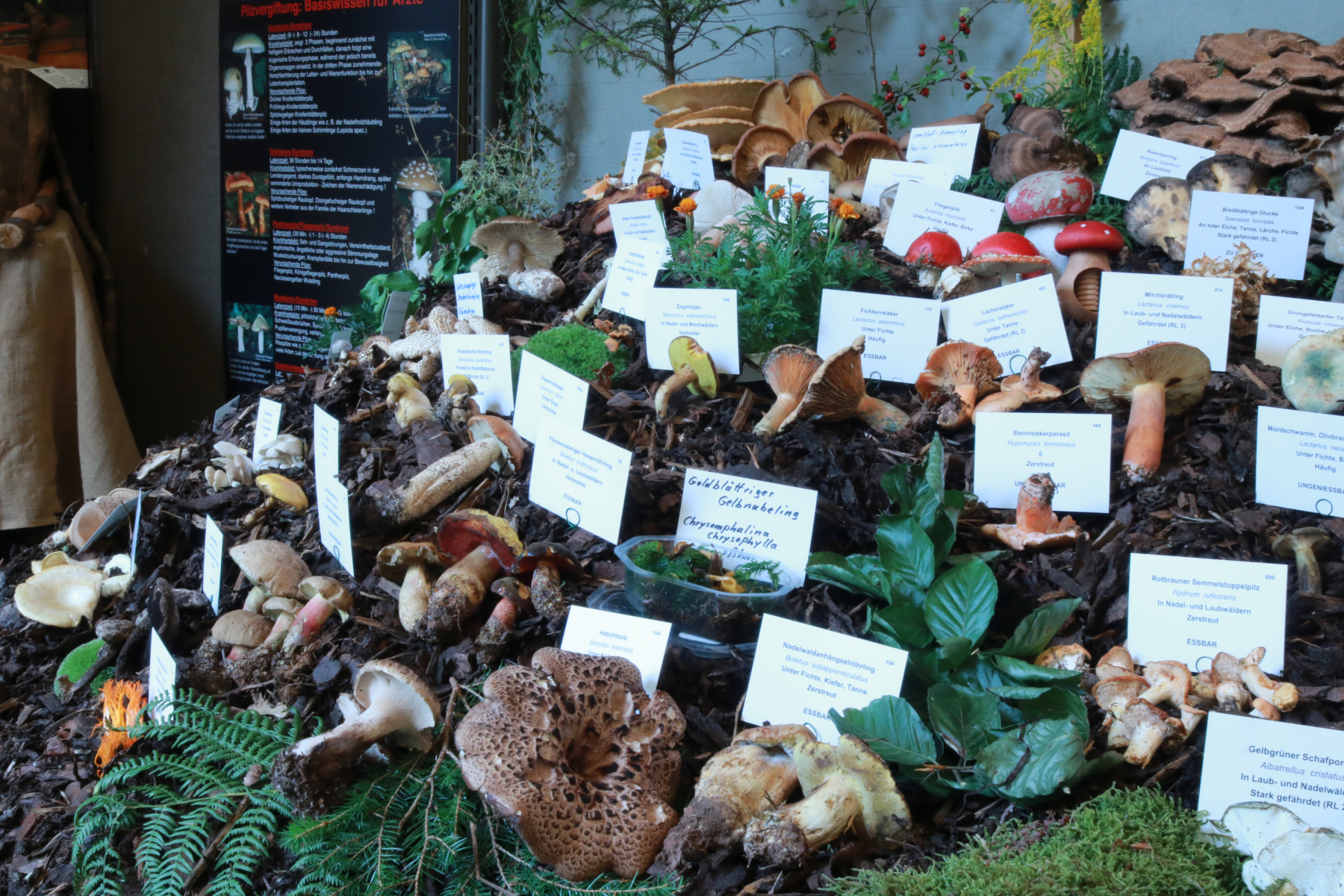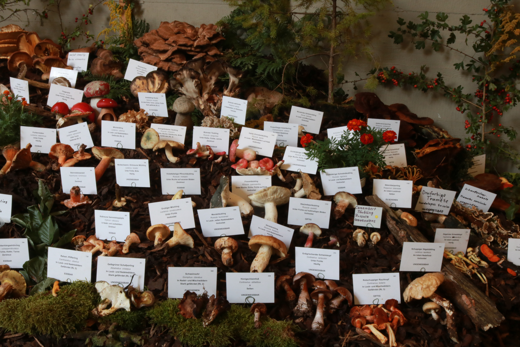 Allen, die noch Ausstellungen planen, kann ich nur raten, nicht aufzugeben. Ich war selber erstaunt, wie viel wir zusammengetragen haben. Etwa sieben Leute unserer Pilzgruppe sind ausgeschwärmt und wir hatten Unterstützung von Teilnehmern eines Pilzkurses am Heiligen Meer. Diesen ein ganz besonderes Danke-schön!