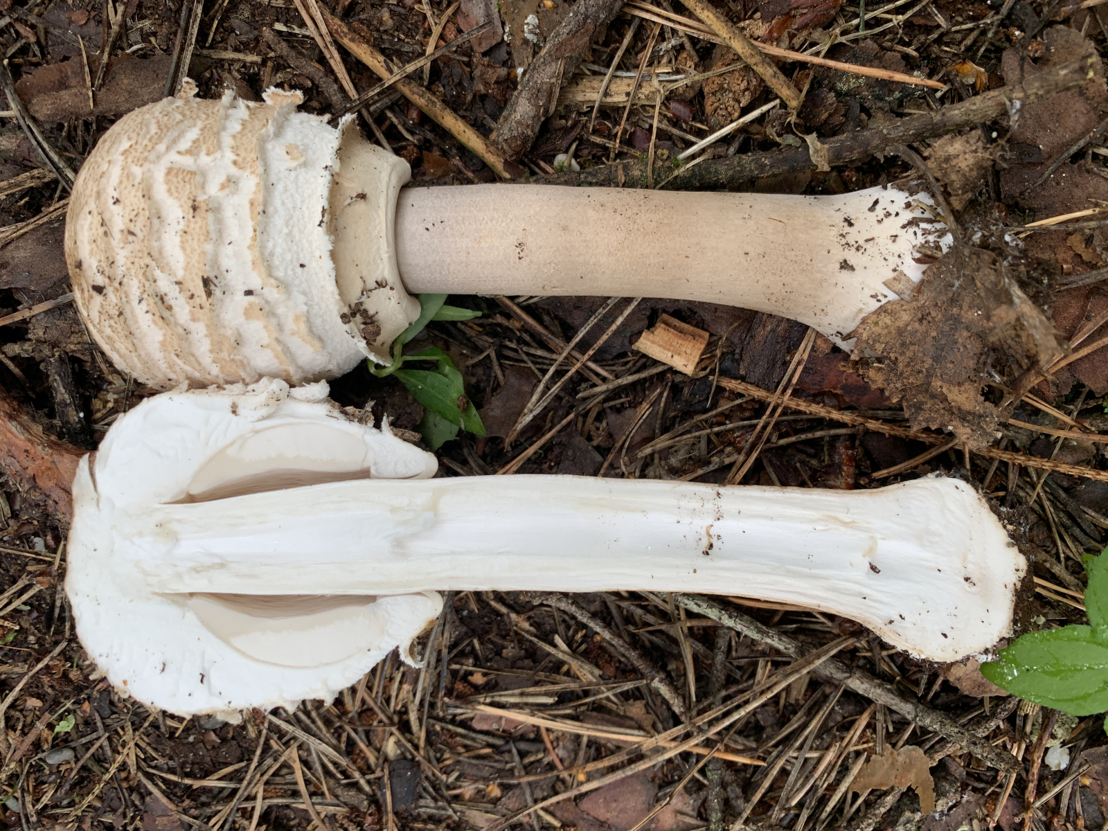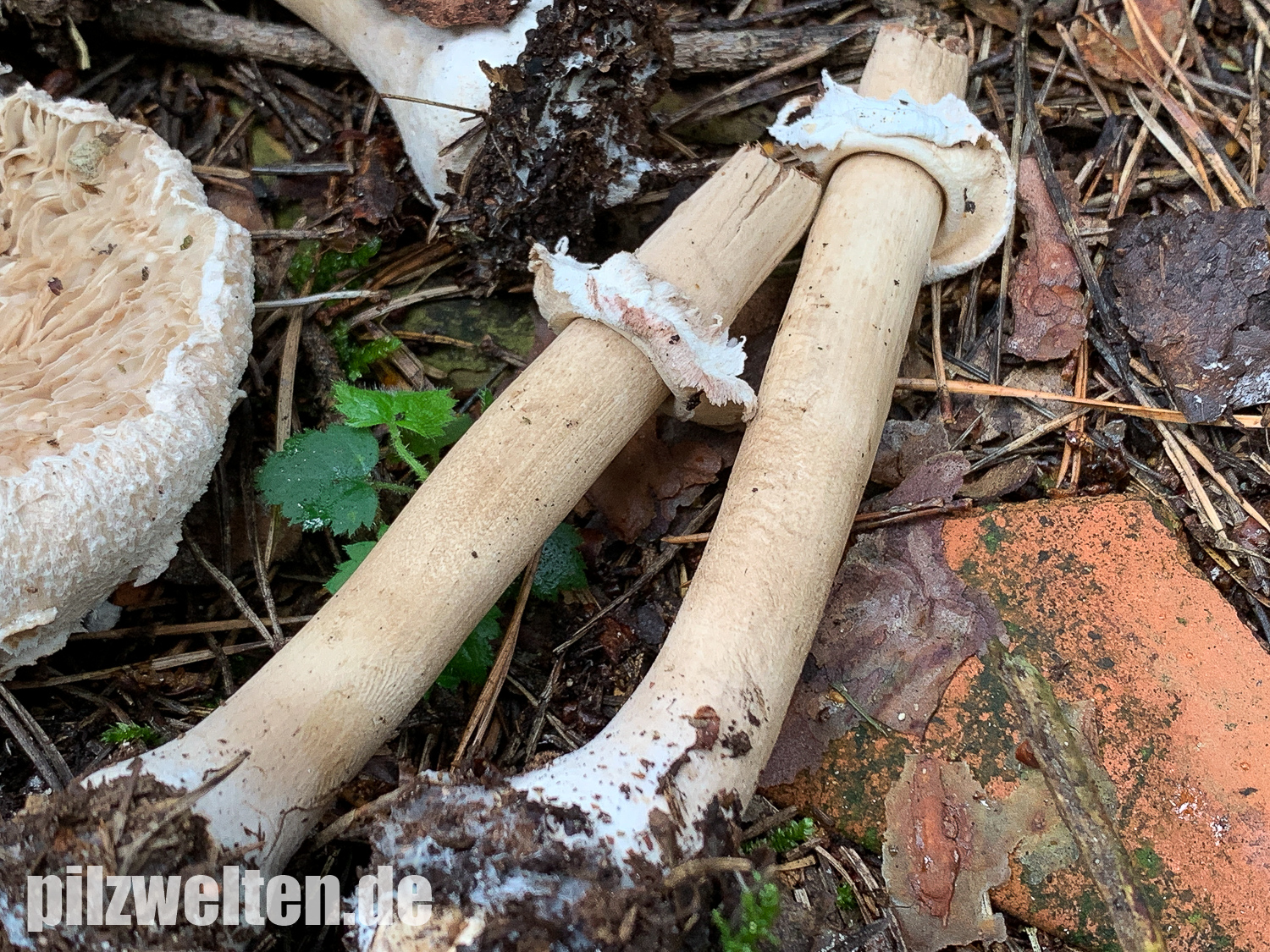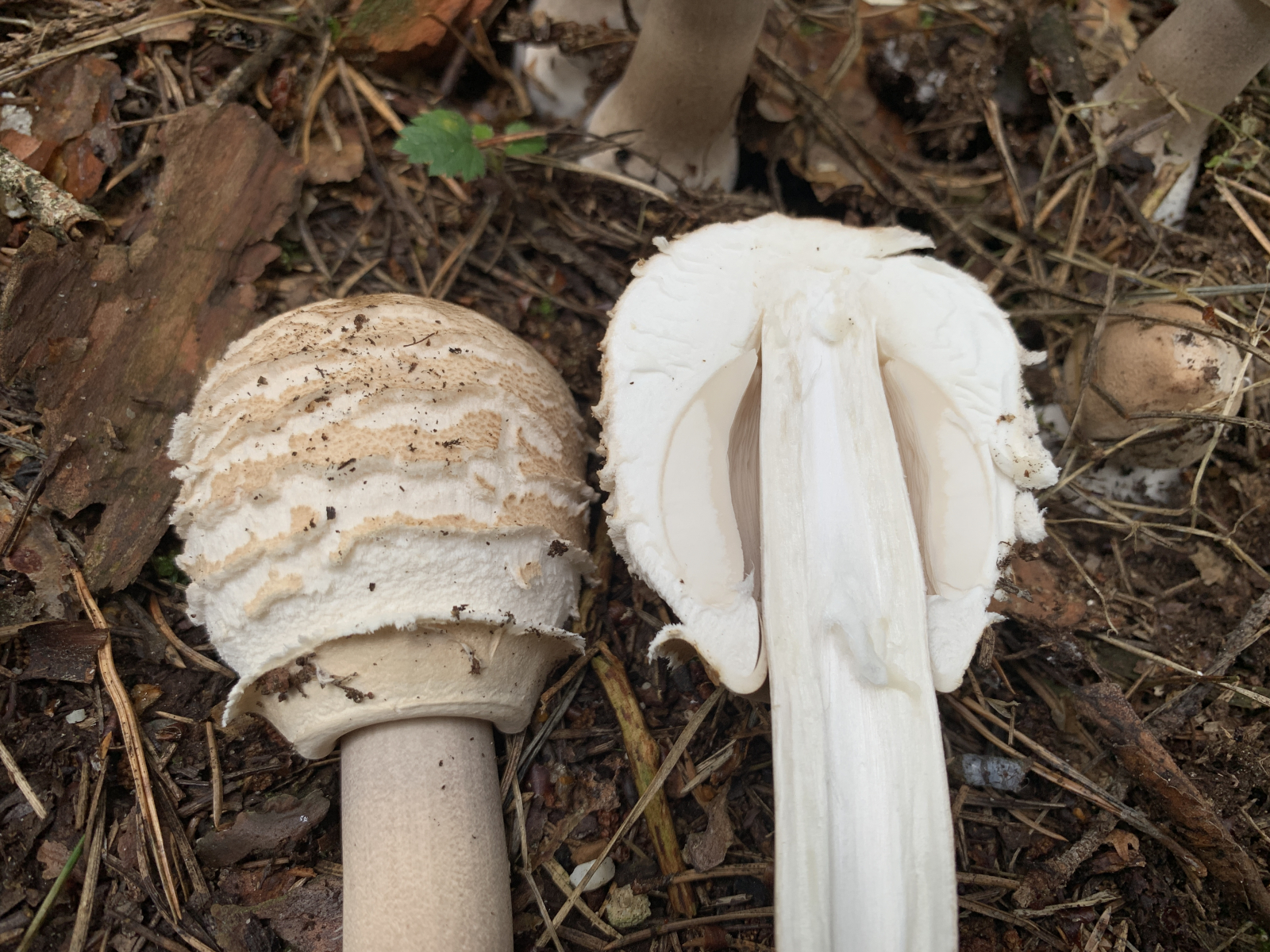 Hier mal ein Vergleichsbild von etwa gleichaltrigen Pilzen (M.procera cf) mit der typischen Stielnatterung und eben Habitus.