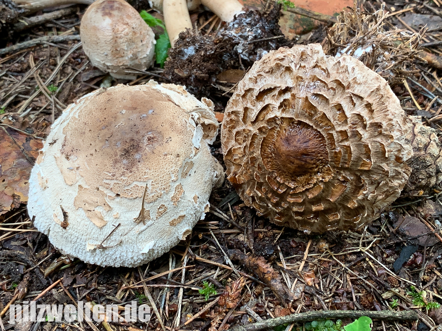 Hier mal ein Vergleichsbild von etwa gleichaltrigen Pilzen (M.procera cf) mit der typischen Stielnatterung und eben Habitus.