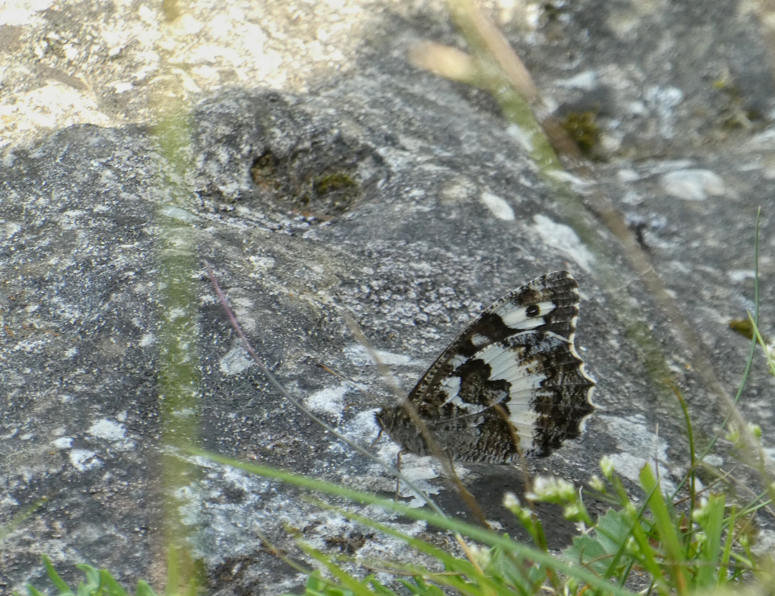 Diese sieht man bei den Felsen kaum. Der Weiße Waldportier (Aulocera circe)