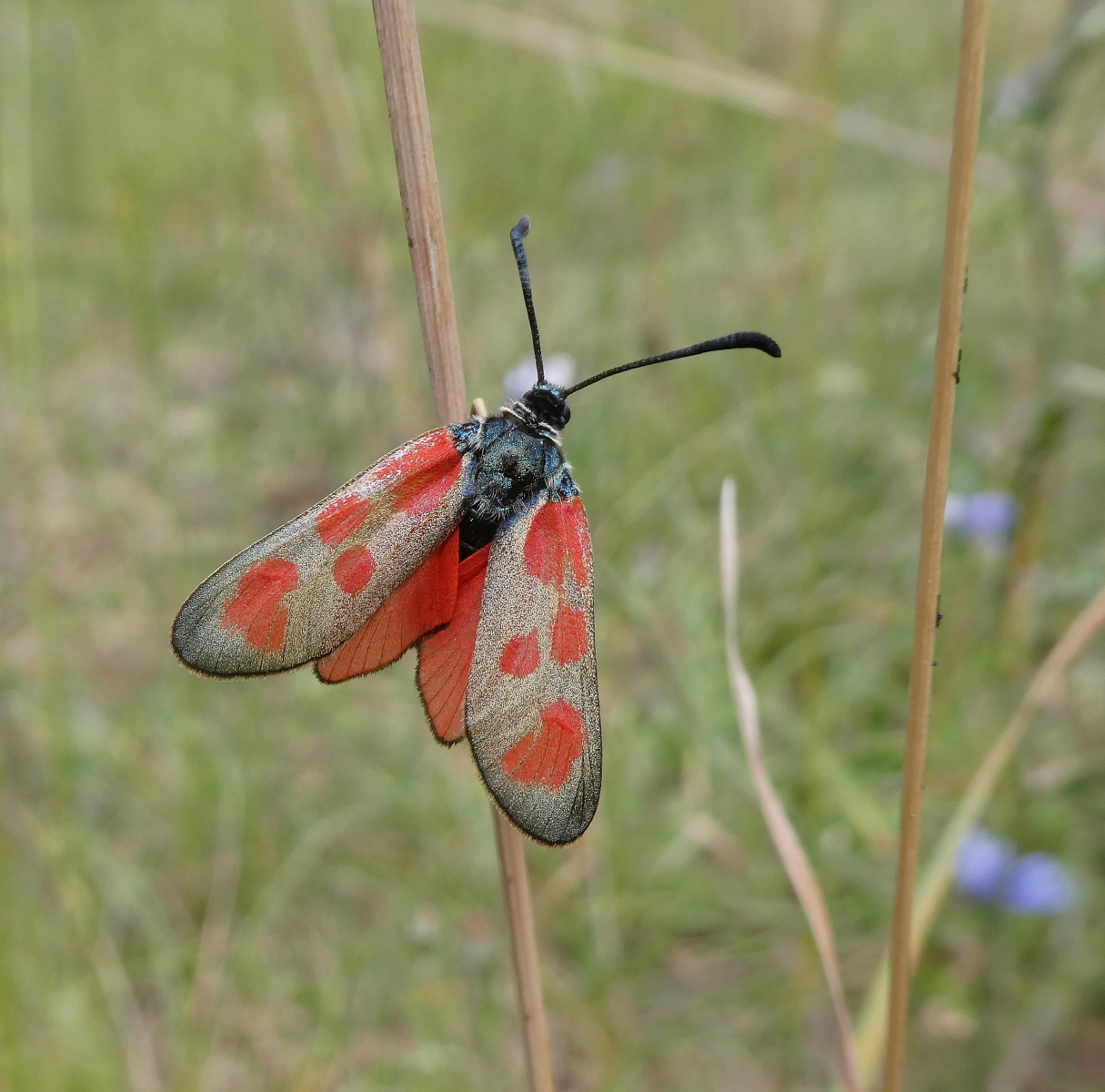 Hier, so vermute ich, das Thymian- oder das Bibernellwidderchen.