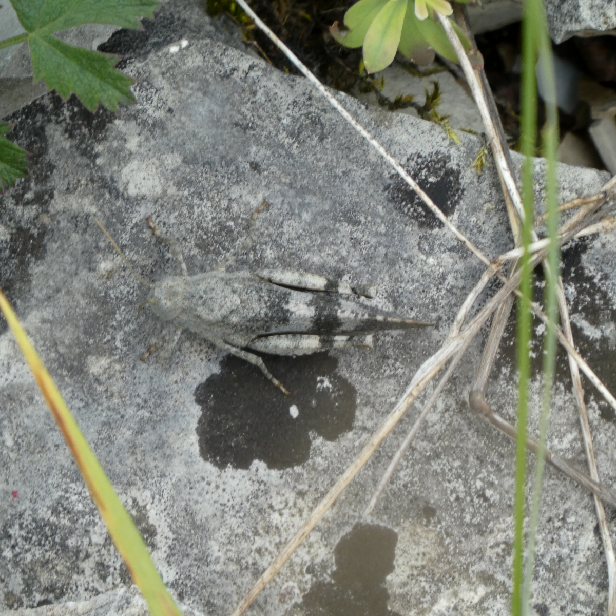 Bei jedem Schritt hüpft es nun mehrfach davon - hier konnte ich einmal eine der Ödlandschrecken fotografisch festhalten.