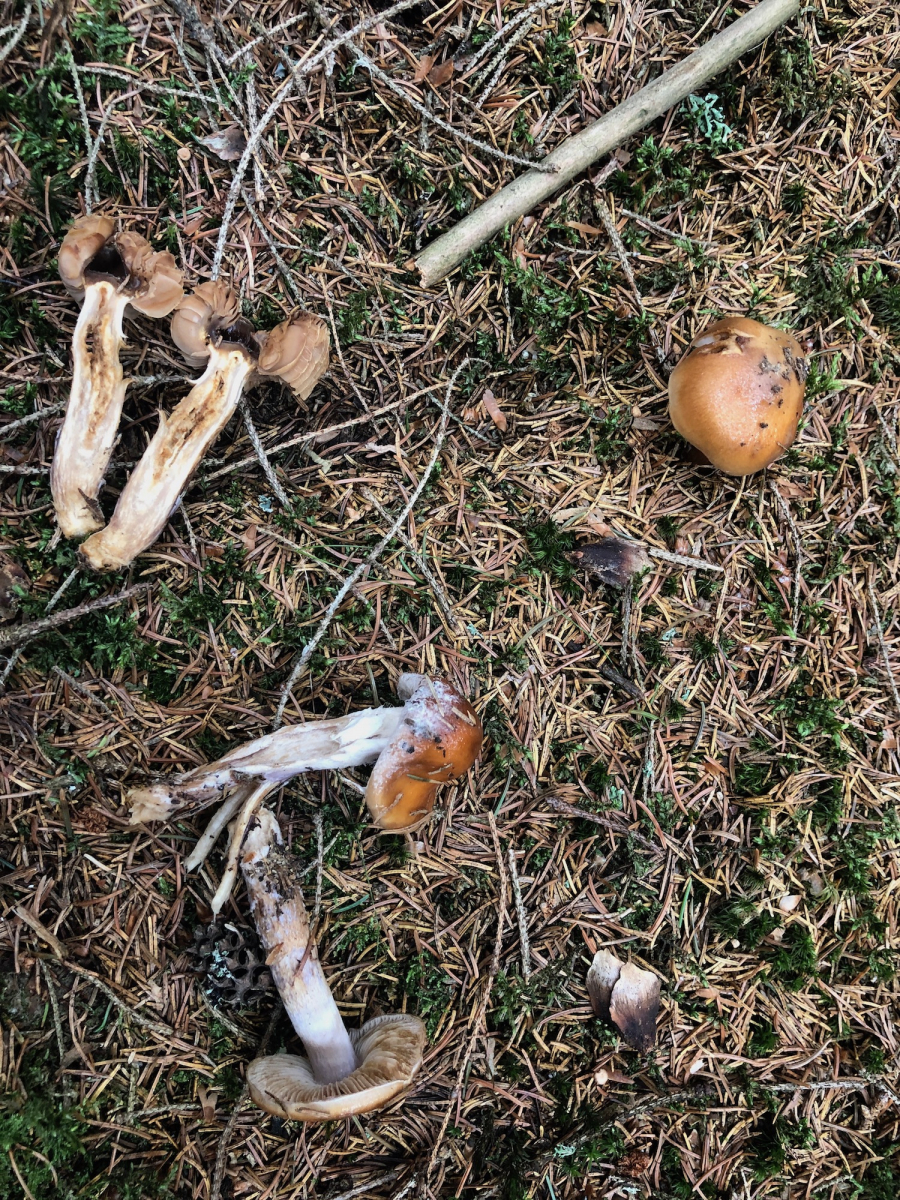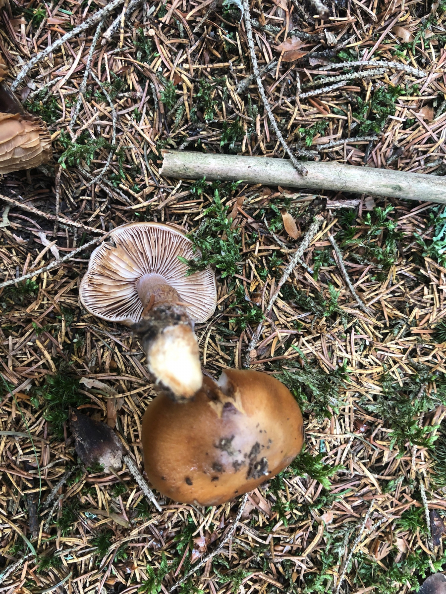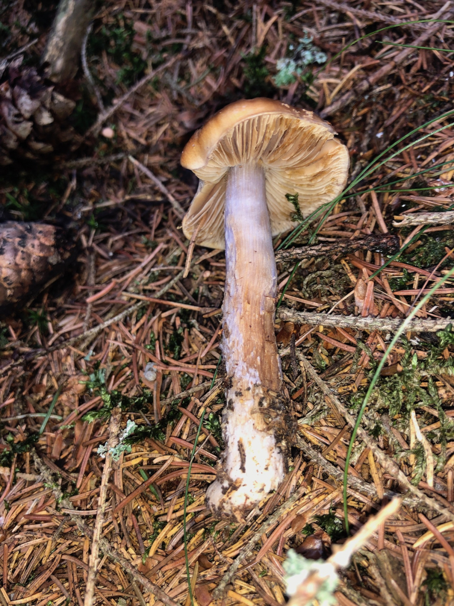 mit einem meiner heutigen Findlinge komme ich nicht weiter. Schleierling und Schleimfuß scheint klar zu sein. Der Pilz hat überhaupt keine bittere Geschmacksnote und einen Honiggeruch nehme ich nicht wahr - aber das will bei mir nichts heißen. Die Pilze habe ich unter Fichten gefunden. Ich tendiere eher zum Blaustielischleimfuß.