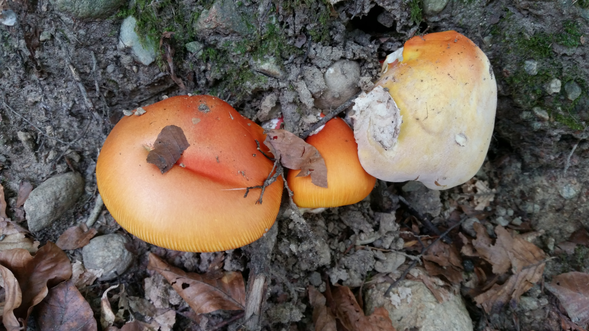 gestern konnte ich hier (mittlerer westlicher Schwarzwald, 250-550 m üM, vermutlich neutraler Boden, Mischwald mit Buchen, Nadelbäumen, vermutlich vor allem Tannen, anderen Laubbäumen und viel Unterholz) viele Pilze sehen. Den Geruch von Pilzen kann ich leider nicht beurteilen. In diesen hier glaubte ich einen grünen Knollenblätterpilz und einen Scheidenstreifling, aber welchen, zu erkennen. Was meint ihr? Bitte entschuldigt eventuell banale Fragen. Da ich hier mit Literatur und Internet herumwurschtele, freue ich mich über Rückmeldung von Erfahrenen. Bei der Gelegenheit noch eine Frage zu einem Fund aus dem Urlaub im Etschtal. Da stand eine gänzlich unbehelligte Pilzgruppe an einem stark begangenen Spazierweg. Ob das wohl ein Kaiserling war?