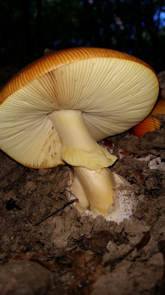 gestern konnte ich hier (mittlerer westlicher Schwarzwald, 250-550 m üM, vermutlich neutraler Boden, Mischwald mit Buchen, Nadelbäumen, vermutlich vor allem Tannen, anderen Laubbäumen und viel Unterholz) viele Pilze sehen. Den Geruch von Pilzen kann ich leider nicht beurteilen. In diesen hier glaubte ich einen grünen Knollenblätterpilz und einen Scheidenstreifling, aber welchen, zu erkennen. Was meint ihr? Bitte entschuldigt eventuell banale Fragen. Da ich hier mit Literatur und Internet herumwurschtele, freue ich mich über Rückmeldung von Erfahrenen. Bei der Gelegenheit noch eine Frage zu einem Fund aus dem Urlaub im Etschtal. Da stand eine gänzlich unbehelligte Pilzgruppe an einem stark begangenen Spazierweg. Ob das wohl ein Kaiserling war?