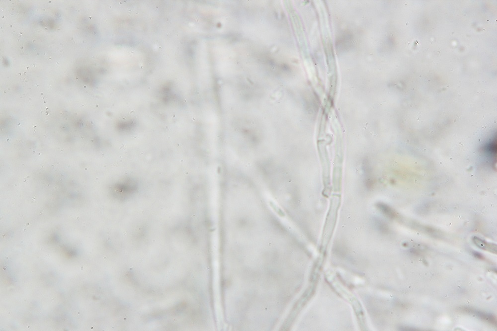 Auch ein Basidiopycnides-ähnlicher Pilz ist es nicht, denn die Konidien sind größer und die Konidienträger haben Schnallen.