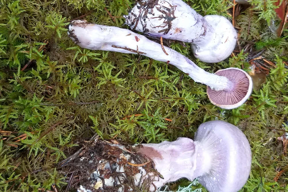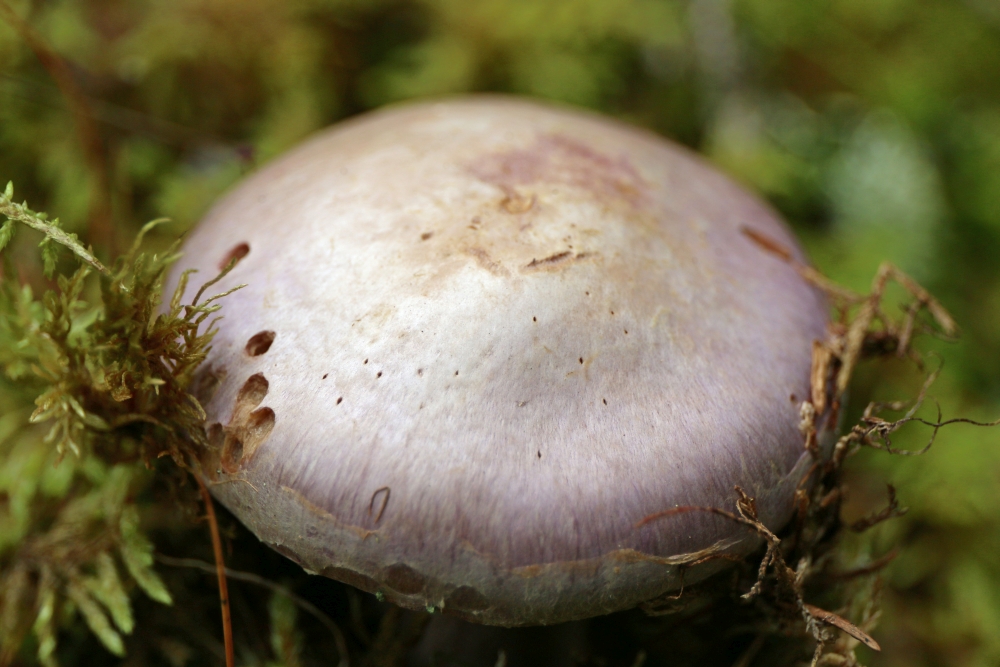 Die Wälder waren voll mit Cortinarien, und da ich die im norddeutschen Flachland selten finde, waren die Meisten neu für mich. So auch dieser, ich halte ihn für den Safranfleischigen Dickfuß / Cortinarius traganus