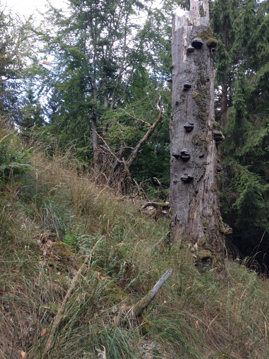 Sie stehen und liegen kreuz und quer herum. Leider war das Holz vom Dürresommer zu sehr ausgetrocknet für die sonst an den Bäumen zu erlebende Artenvielfalt.