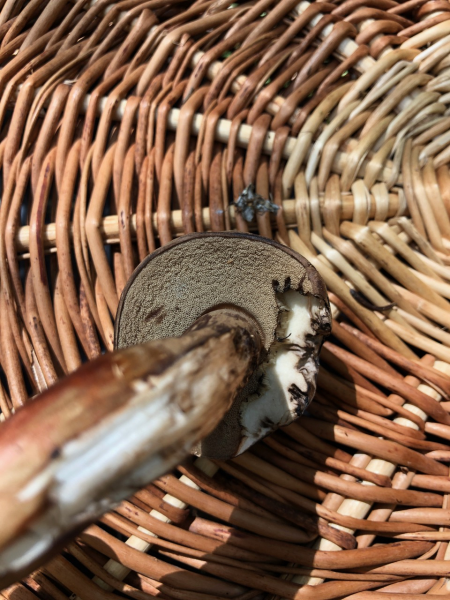 Dieser Porphyrgraue Wulstling (danke Schupfi) -röhrling gab zunächst Rätsel auf. Dürfen die so nach Fisch stinken und rot anlaufen?