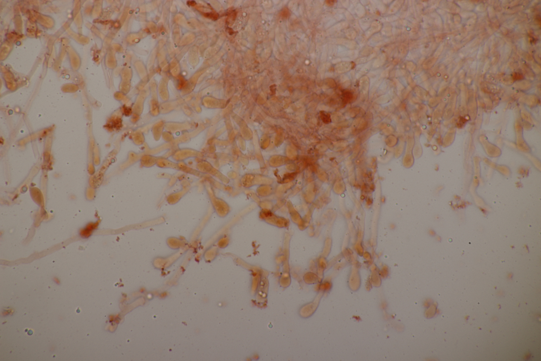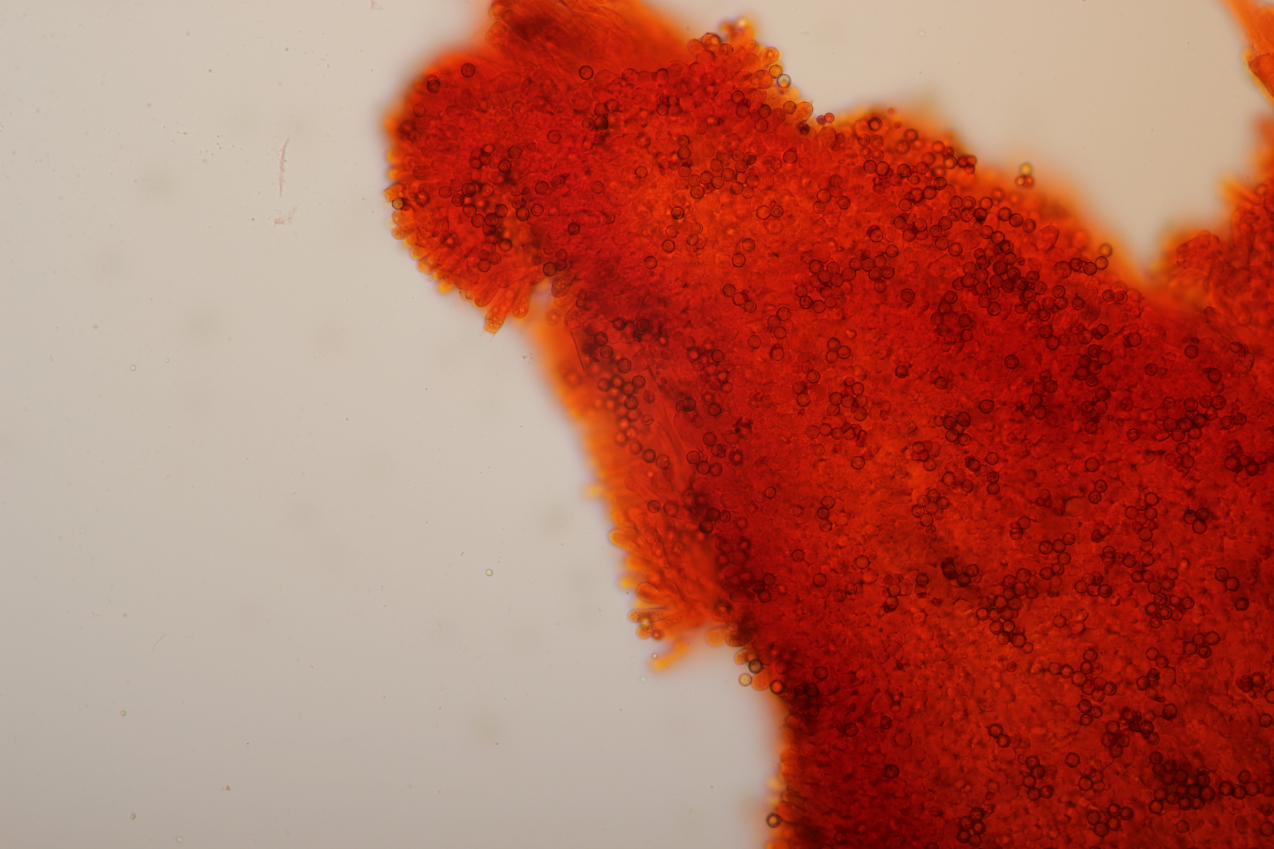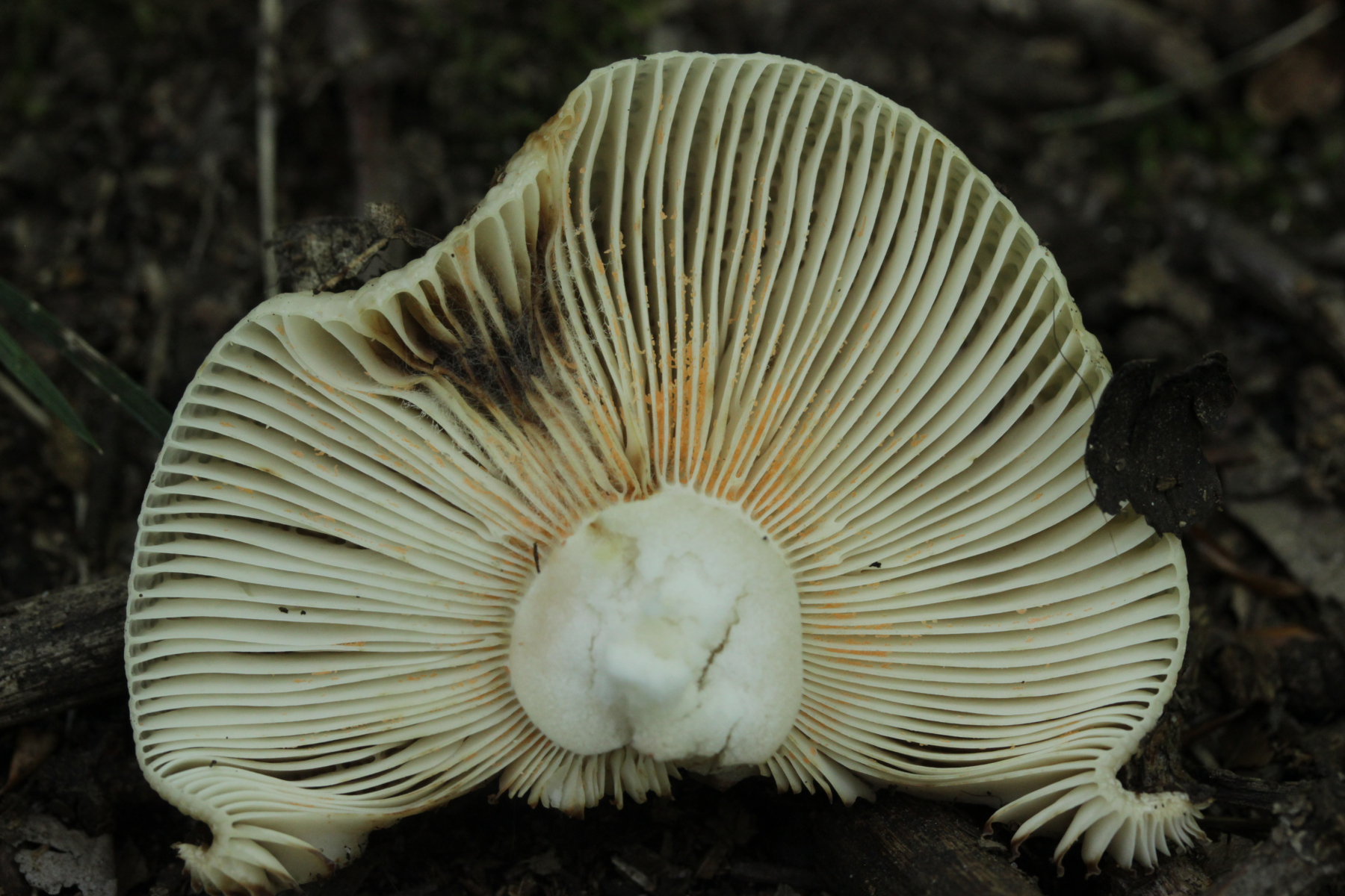 21. Dieser Täubling hatte seltsame Tierchen an seinen Lamellen, die sich offenbar von den Sporen ernähren: