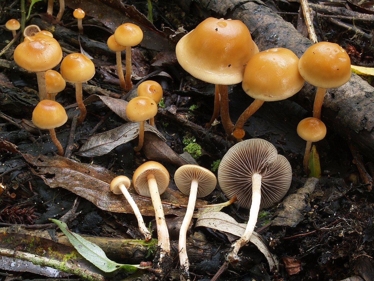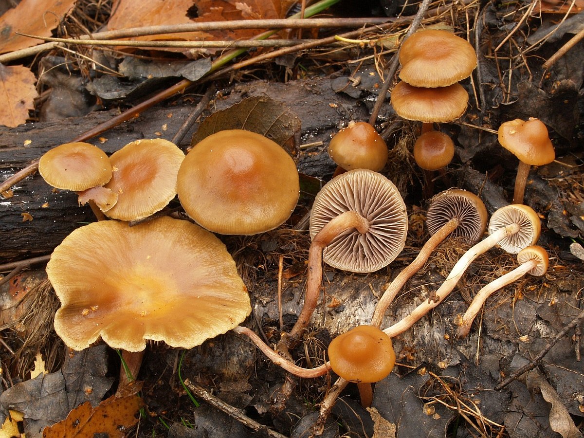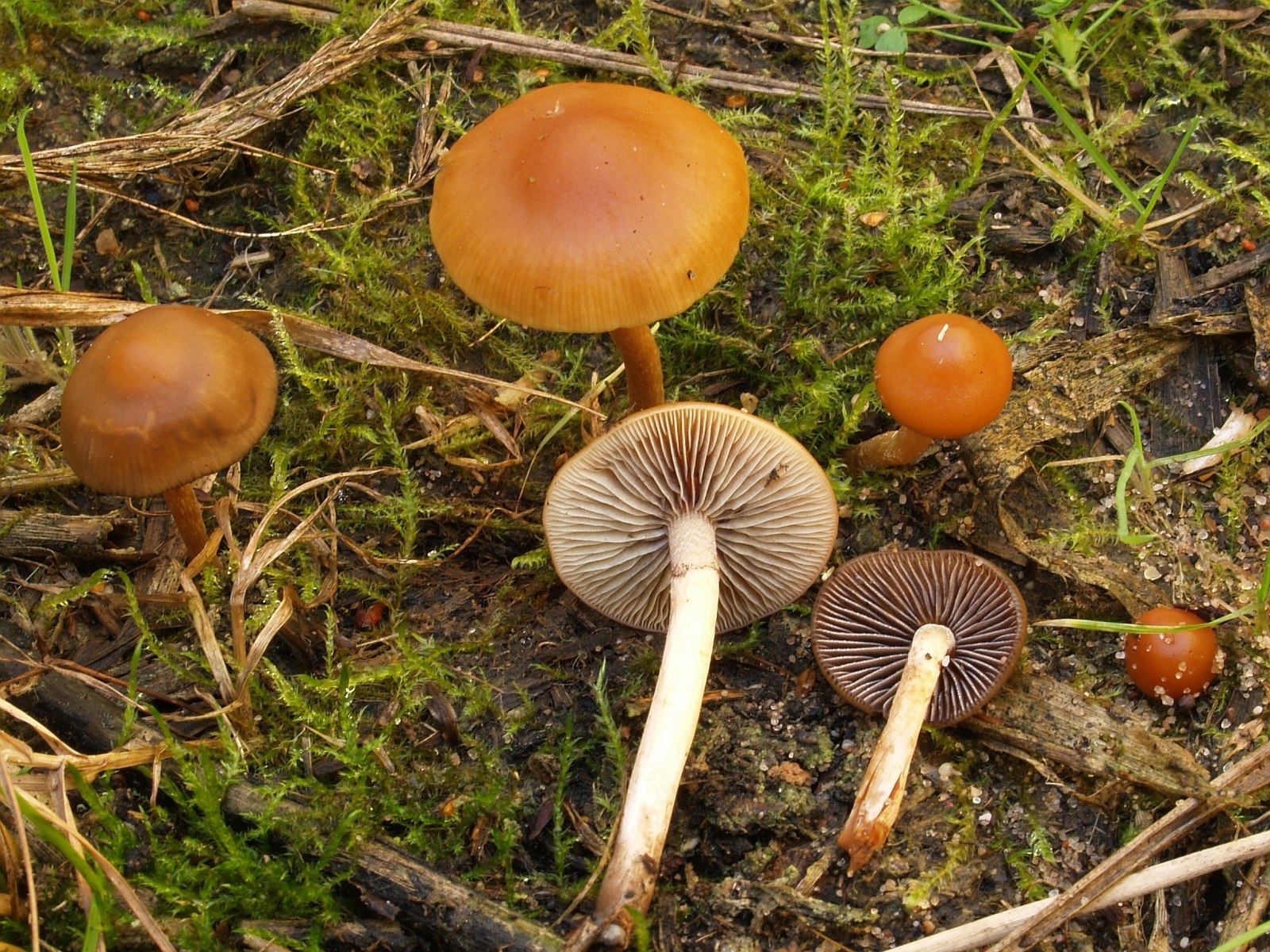 Hier mal einige Funde im Bild: Teichrand-Schwefelkopf (Hypholoma subericaeum)