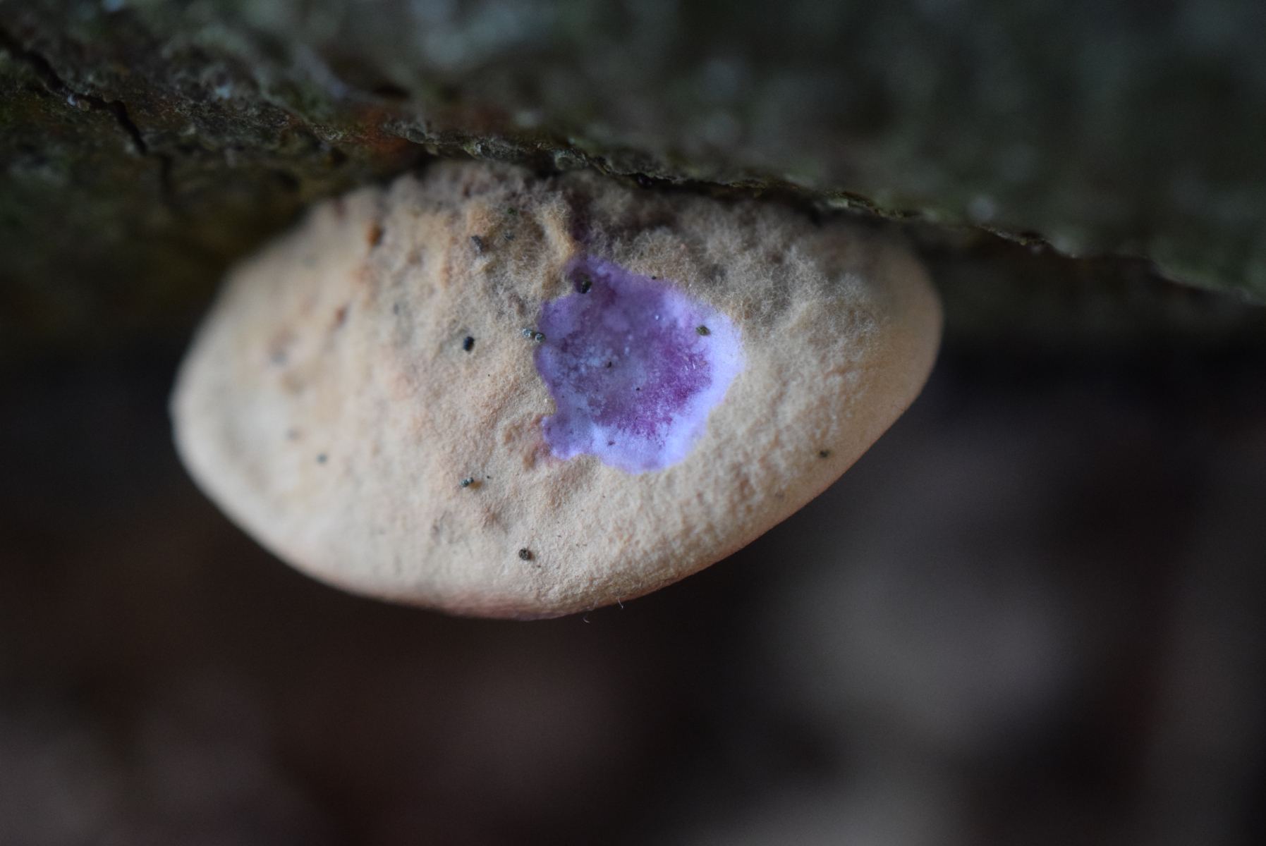 Ich bin spät dran. Hier habe ich 2 Tropfen 10%ige NAOH auf die Hutoberseite geträufelt, und nach etwa 10 Sekunden Wartezeit ist dieses Photo entstanden (s. unten). Ich hoffe damit ist der Zimtfarbene Weichporling ausgeschieden, denn der müsste sich violett färben, richtig? Wenn ich nicht irre, dann sieht man da schon im Ansatz das "zottige Bärenfell" des Inonotus hispidus, oder? An beli1: Ja, der Phellinus pomaceus sieht echt sehr ähnlich aus, zumindest im Jungstadium. Ich nehme an, daß sich Alleinstellungsmerkmale, wie bspw. die deutlich abgrenzende Hutoberseite, erst bei älteren Pilzen zeigen, und der photographierte Pilz einfach noch zu jung ist, nicht wahr? Morgen kann ich noch mehr Photos machen, bzw. ich versuche es mal mit einem Rundum-Schwenk-Video. Hintergrund zu mir: in der Tat, ich hatte/habe Magen-Darmprobleme bis hin zu Lähmungserscheinungen ausgehend vom Magen-Darmtrakt, und ich war zeitweilig schon so ne Art Geist auf dem Weg in die Unterwelt. Auf Chaga, Hericium, Phellinus und andere natürlichen Möglichkeiten kam ich leider erst sehr spät, und so entstand dann eben auch mein Interesse für das Pilzhobby.