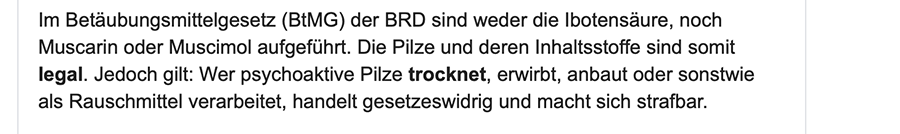 Ich weiß ja nicht, ob das zielführend ist, jeden gleich unter Generalverdacht zu setzen, der sich über einen giftigen Pilz informiert. Ein Artikel, der den Fliegenpilz "bewirbt" kann aber in jedem Fall nur kontraproduktive Wirkung haben. Wobei ich mich bei Homöopathie immer frage, ob es auf dem Planeten ausreichend Wasser gibt, um 1g des Pilzes entsprechend zu potenzieren. ![]()