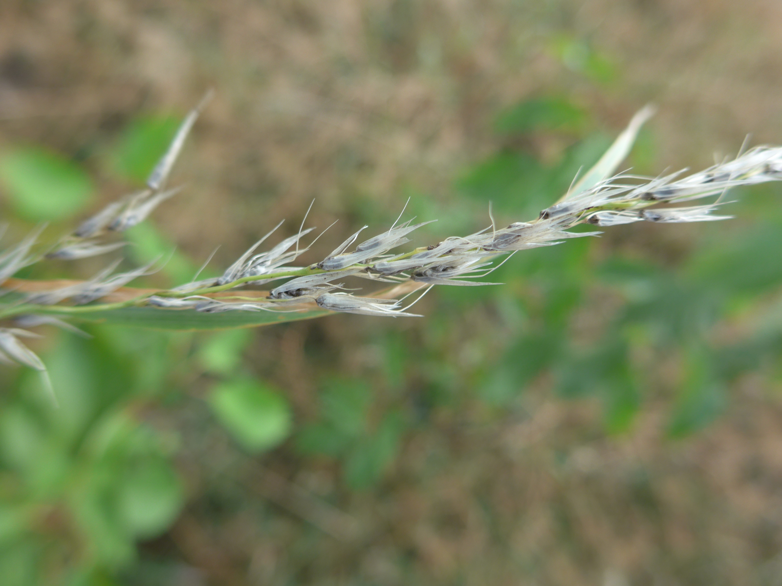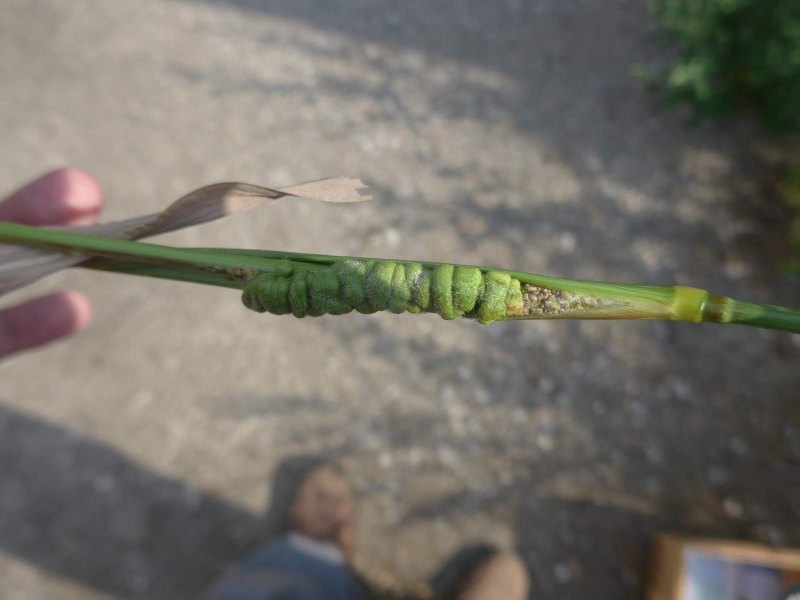 Einer der wenigen Funde von mir auf der Tagung. Neben einem Misthaufen fiel mir ein kräftiges Gras, was mir als Hühnerhirse - Echinochloa crus-galli vorgestellt wurde, auf. Friedemann meinte, dass wir dort gleich noch den Brand daran suchen könnten. Er hats kaum ausgesprochen, da fielen mir schon die Brandbutten/Brandgallen von Ustilago trichophora auf.