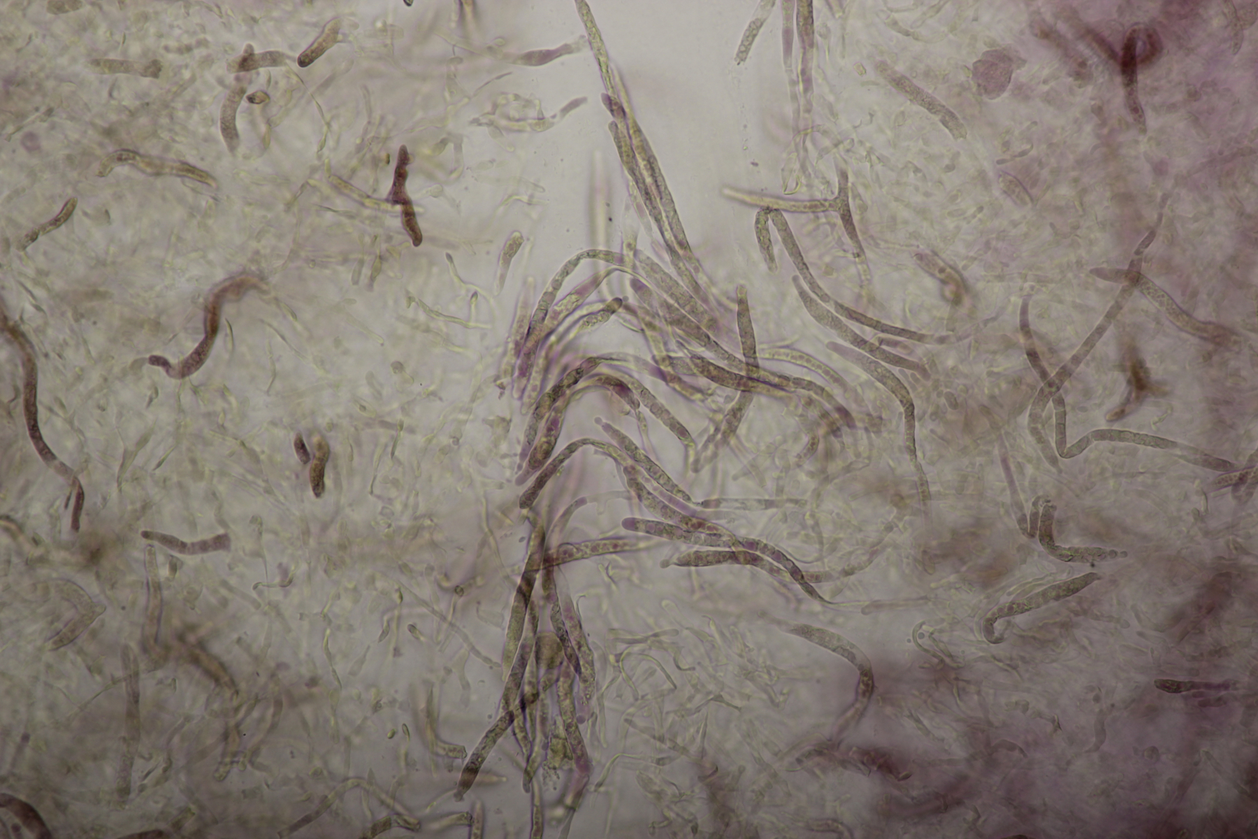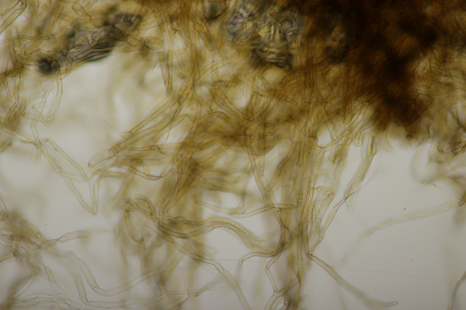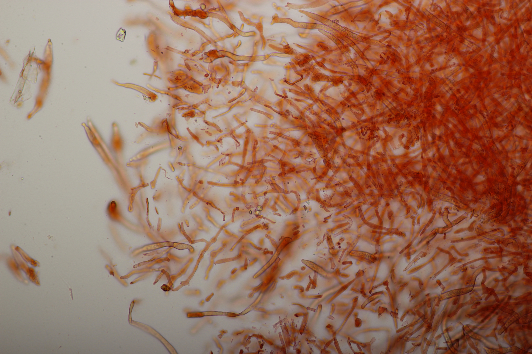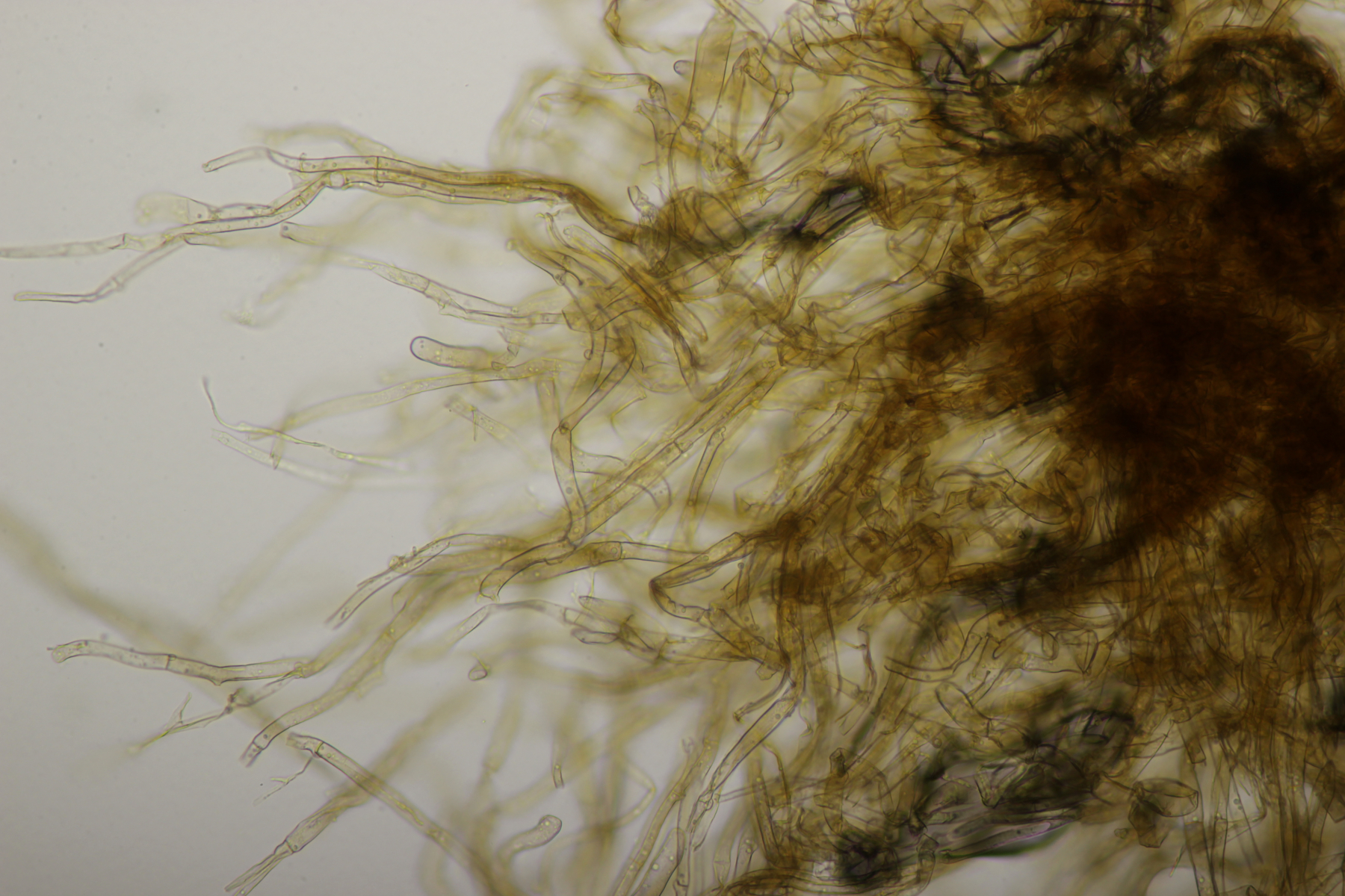 Huthaut in Sulfovanillin. Zystiden grau gefärbt.