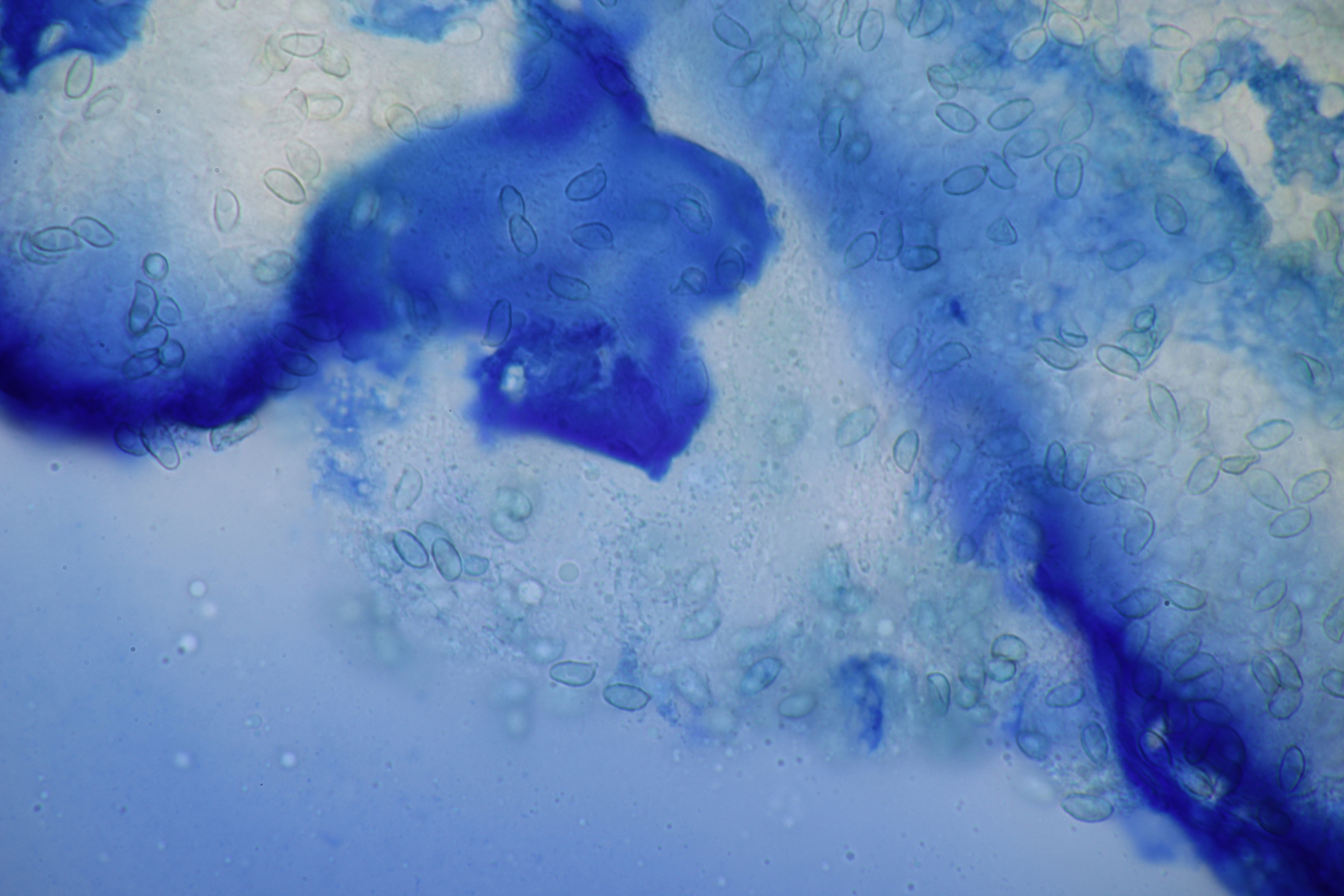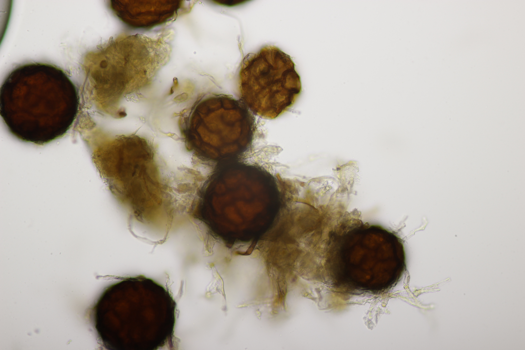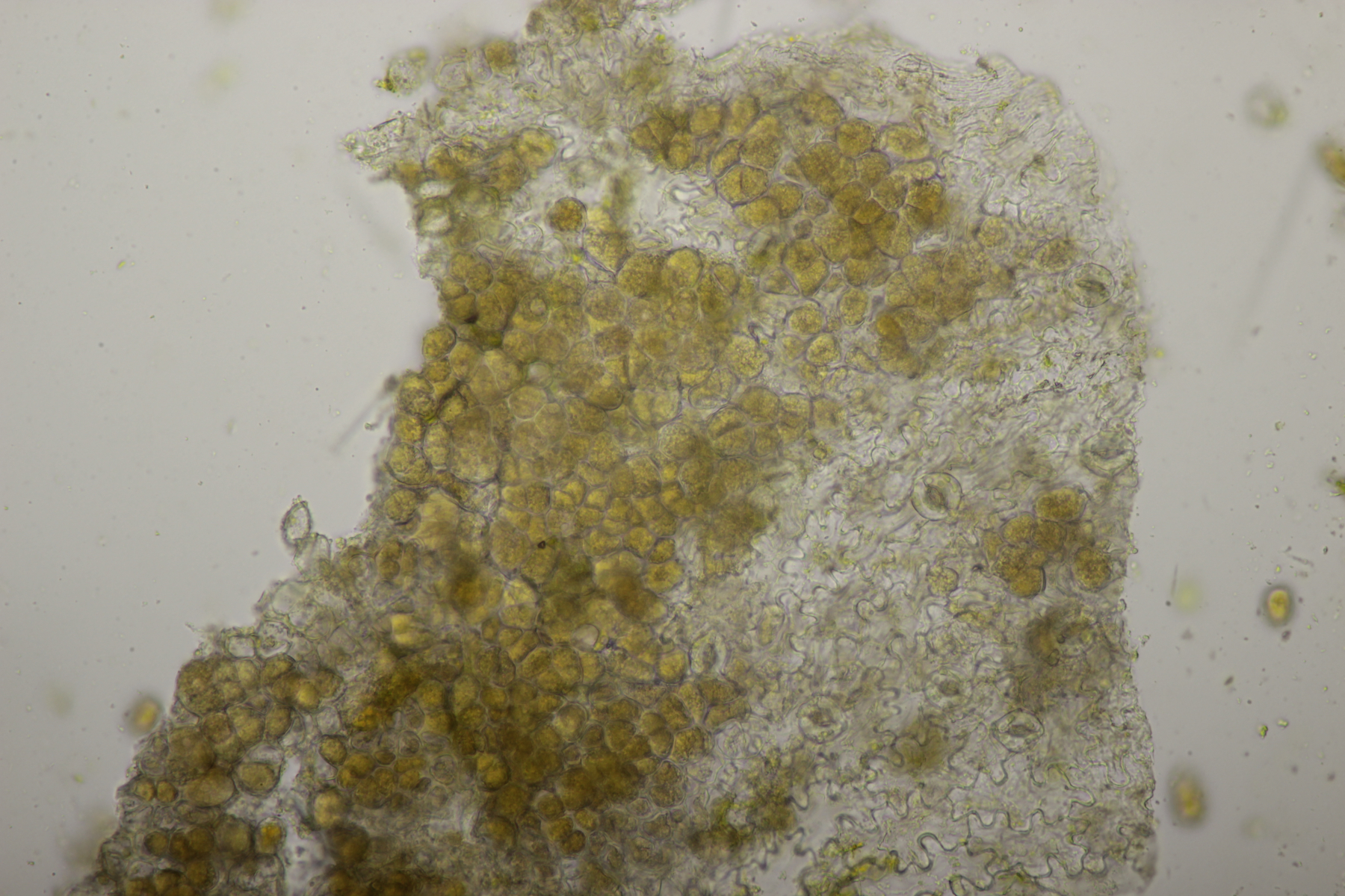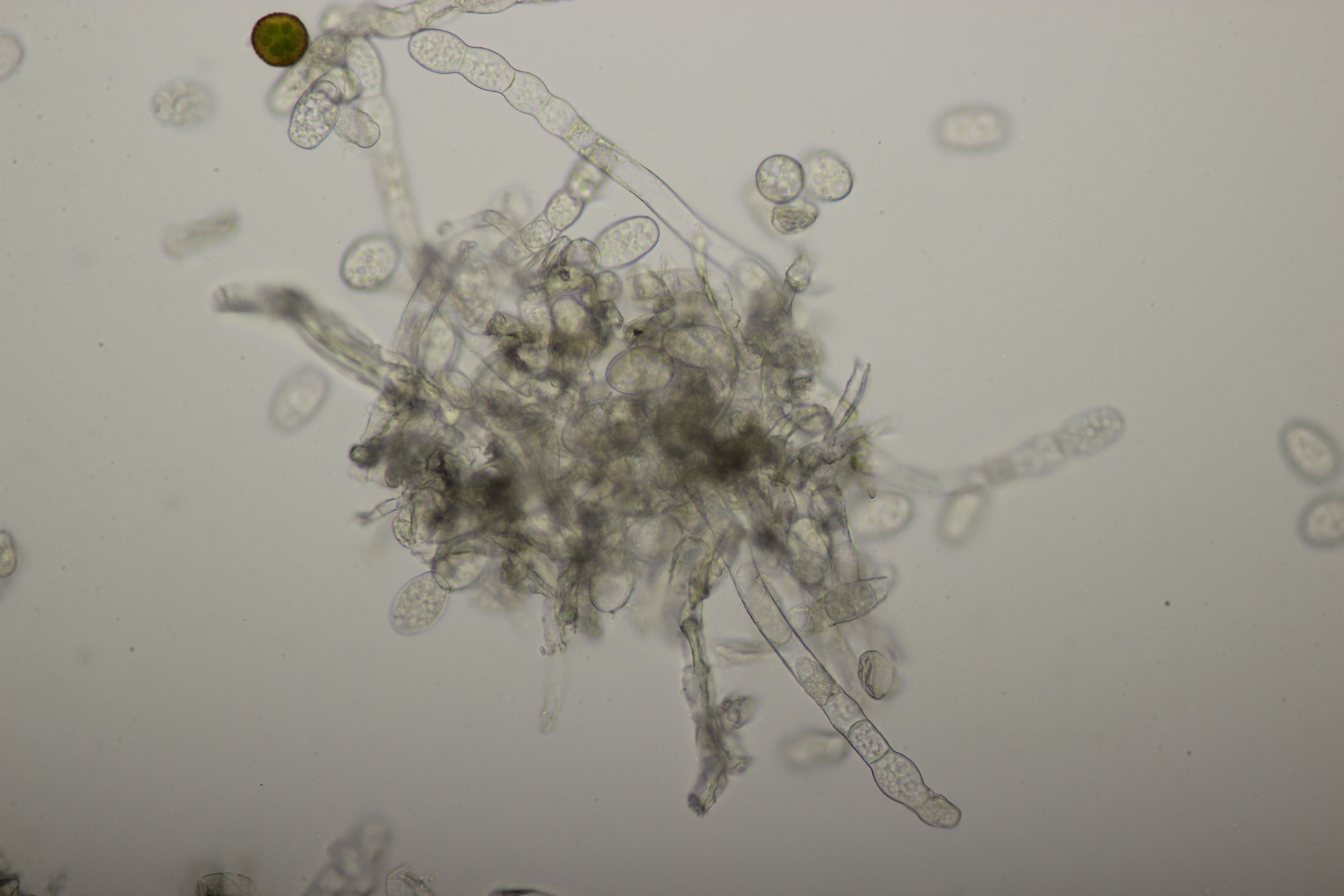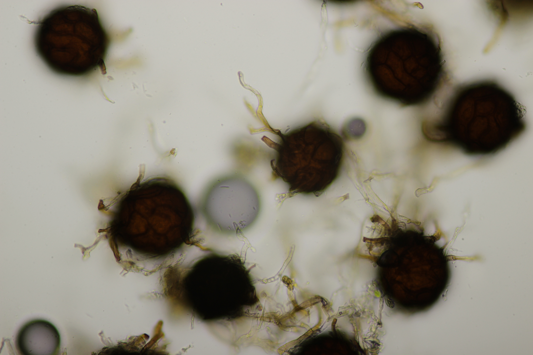 Die berühmten Rhizomorphen in KOH 3%. Wie man sieht, sieht man nicht viel. Skeletthyphen sind aber wohl erkennbar