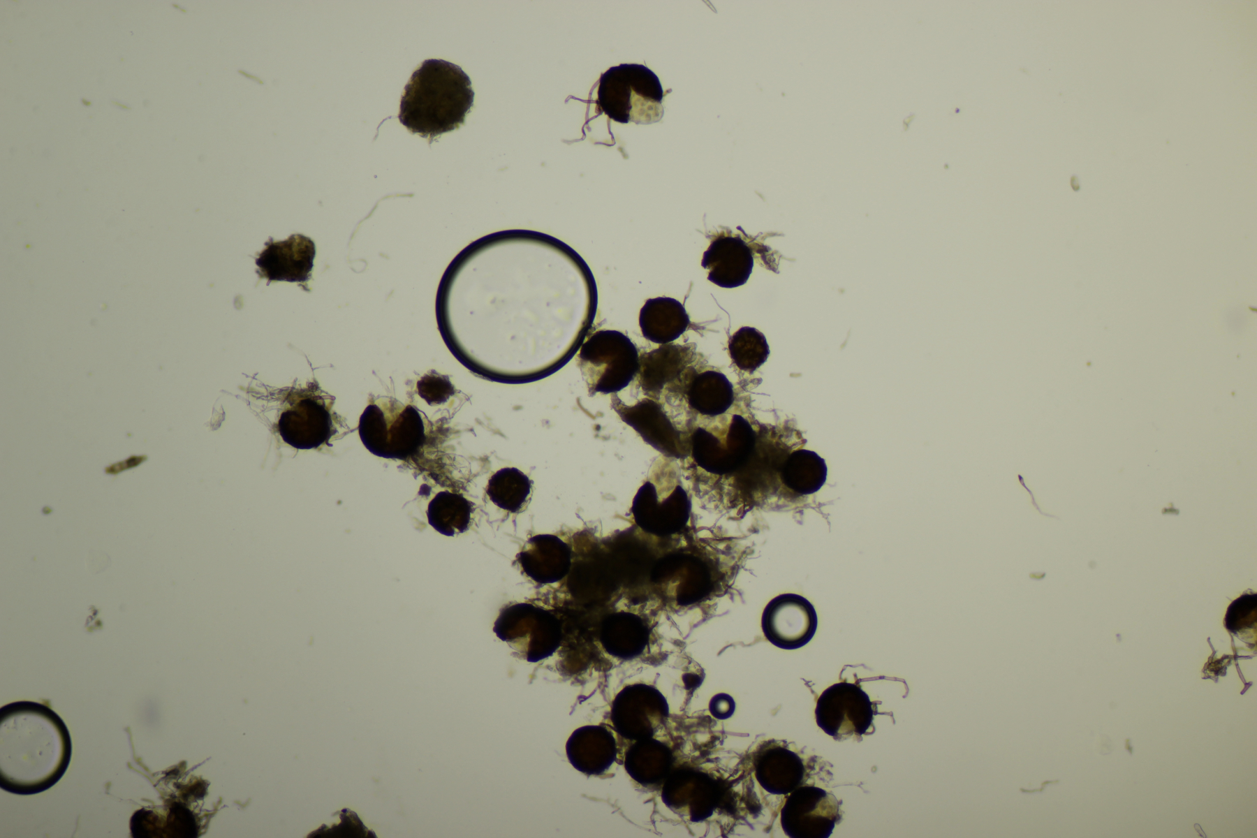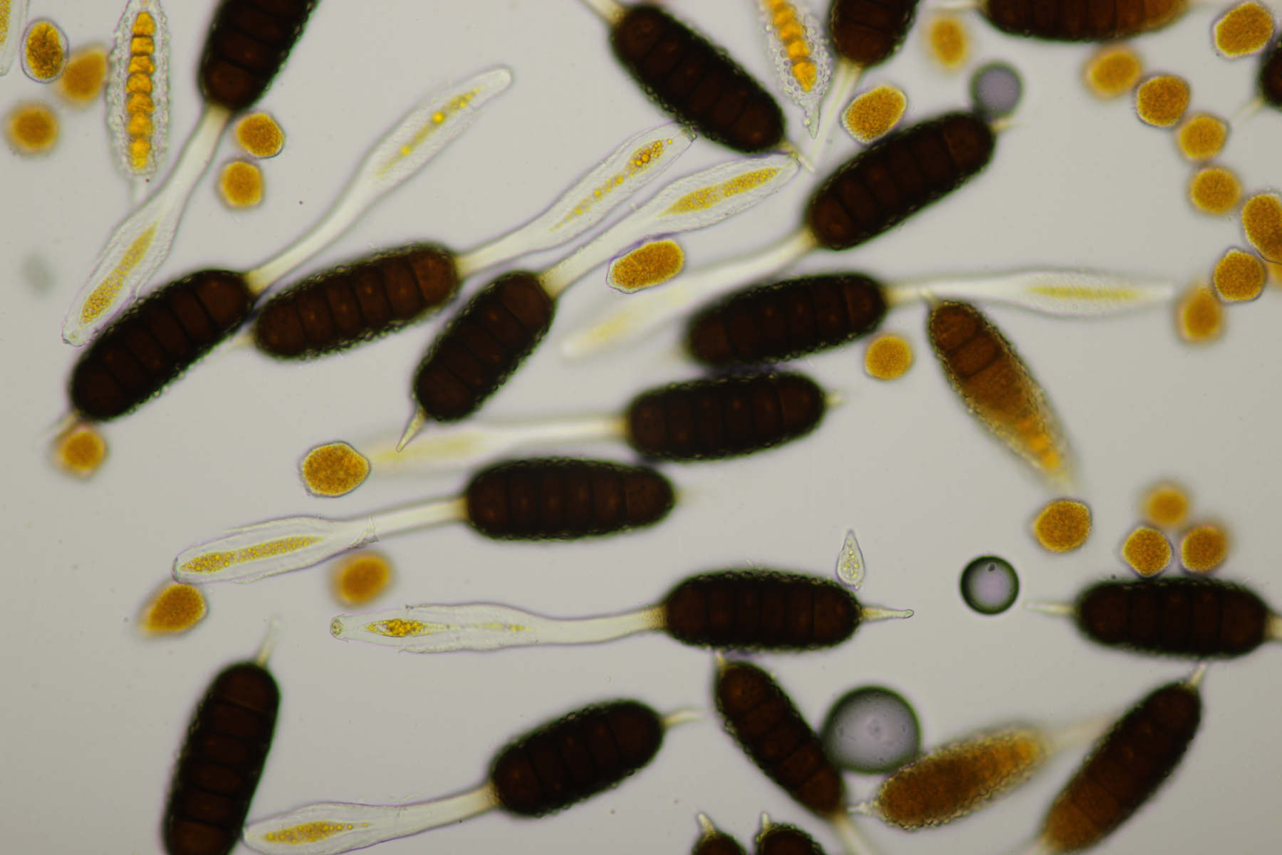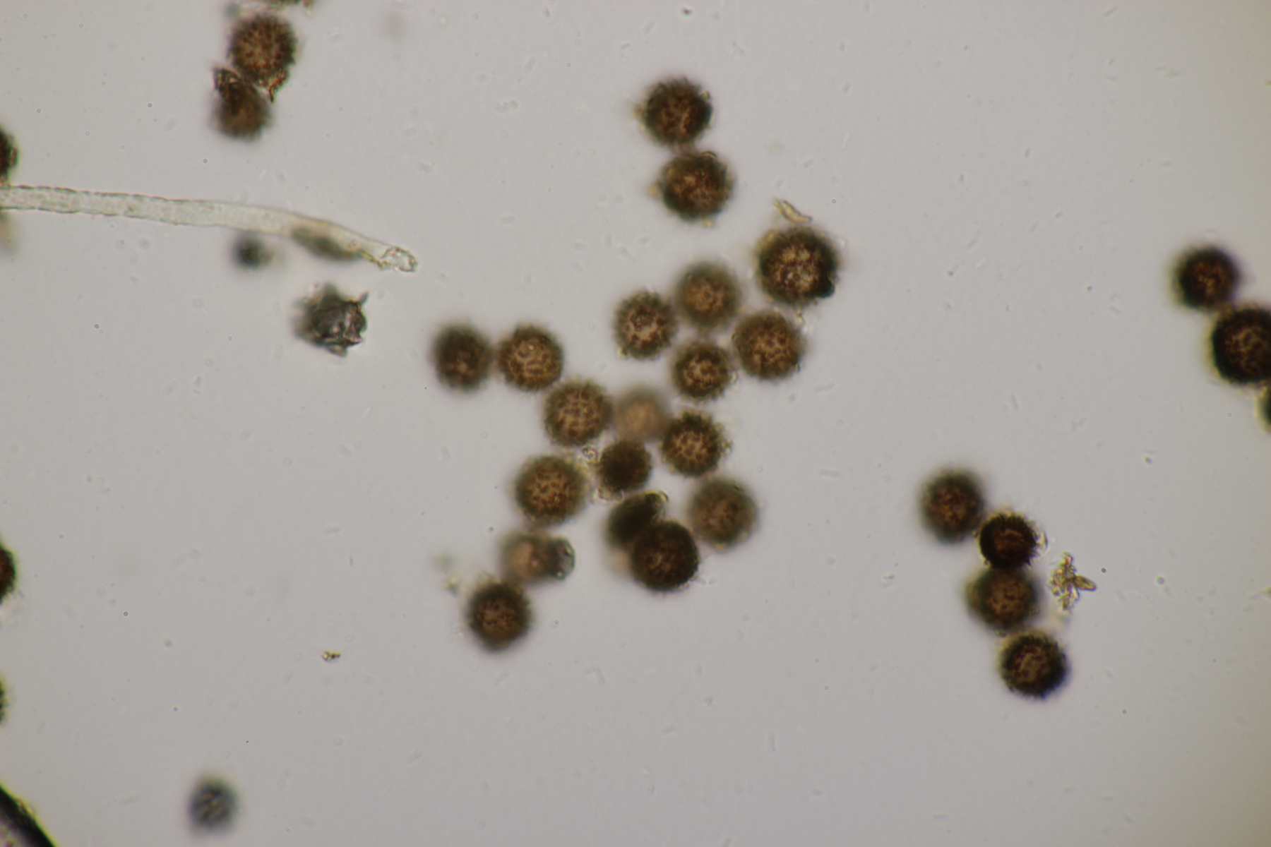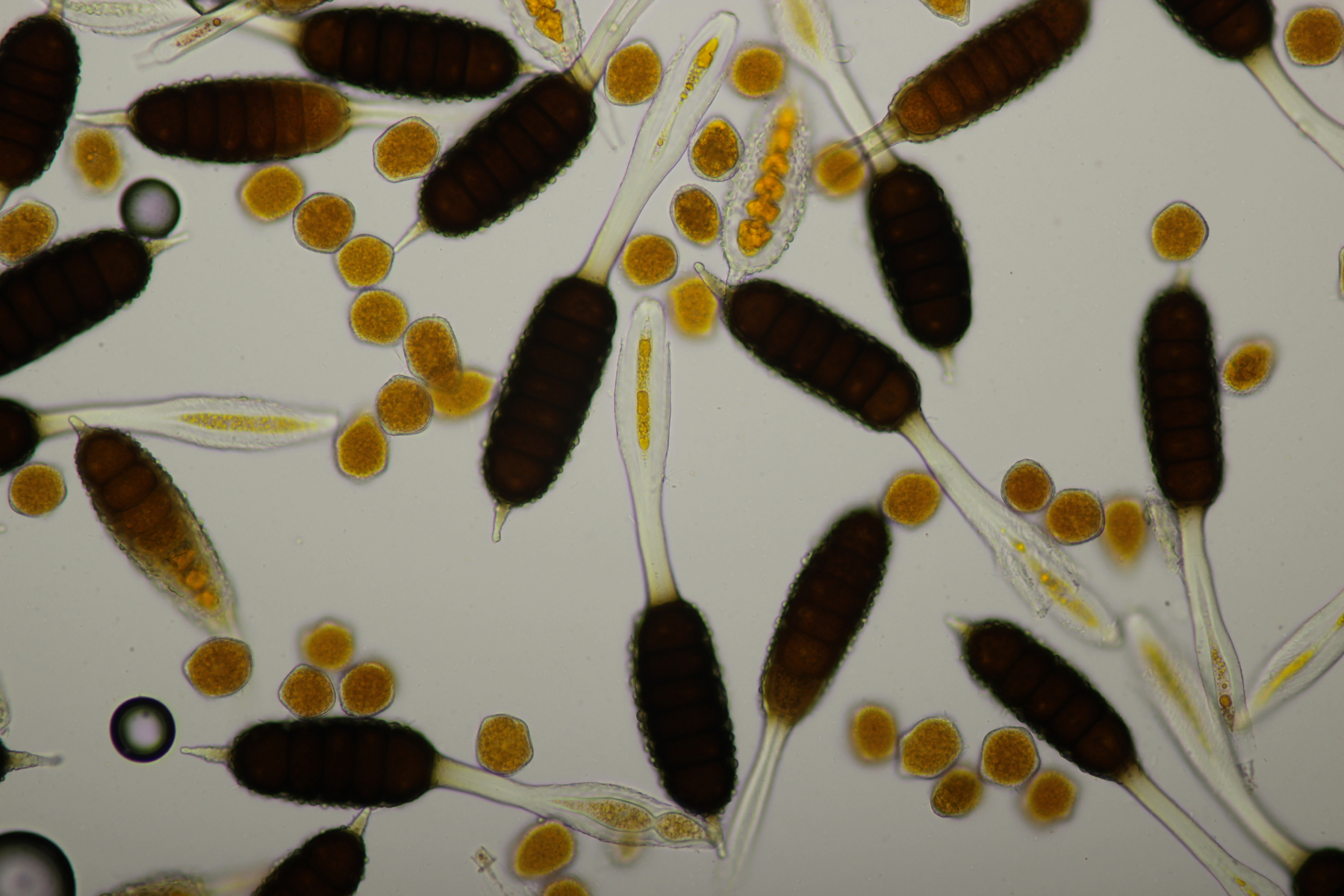 Die berühmten Rhizomorphen in KOH 3%. Wie man sieht, sieht man nicht viel. Skeletthyphen sind aber wohl erkennbar