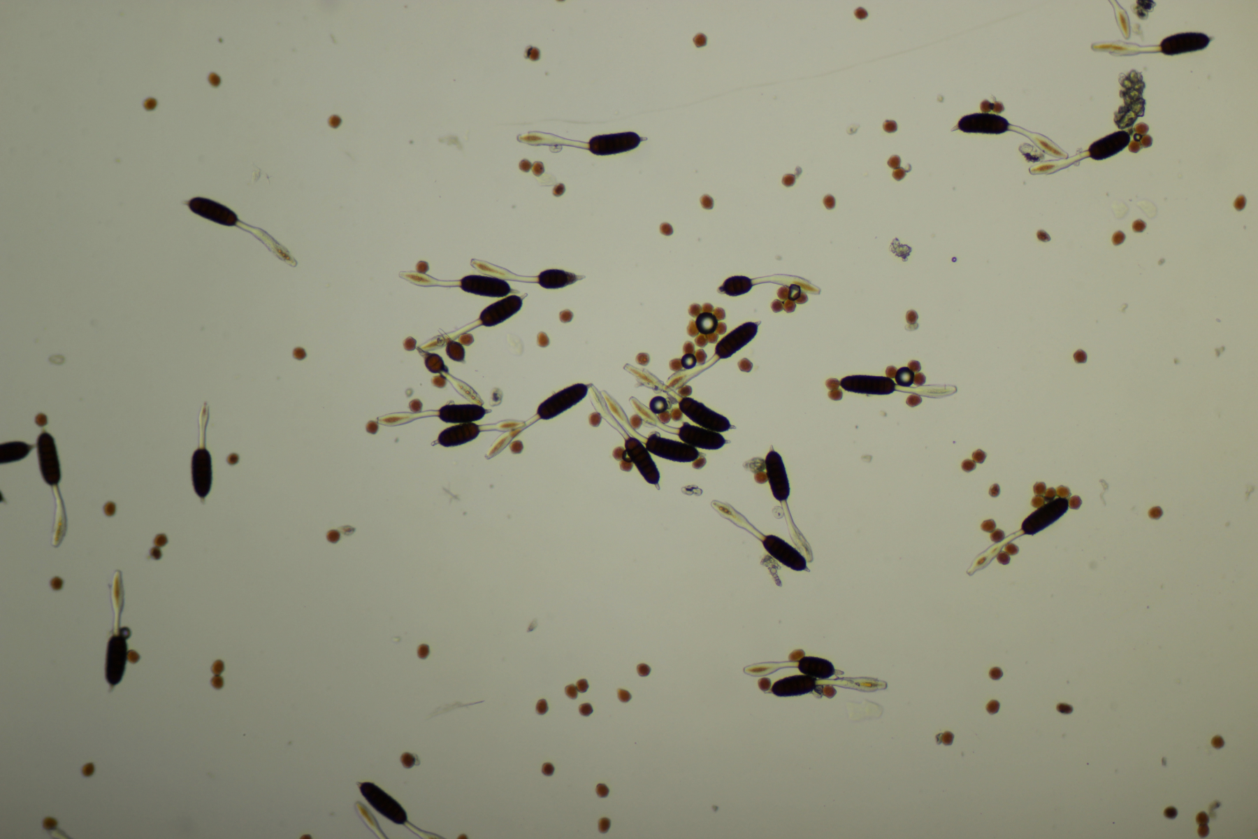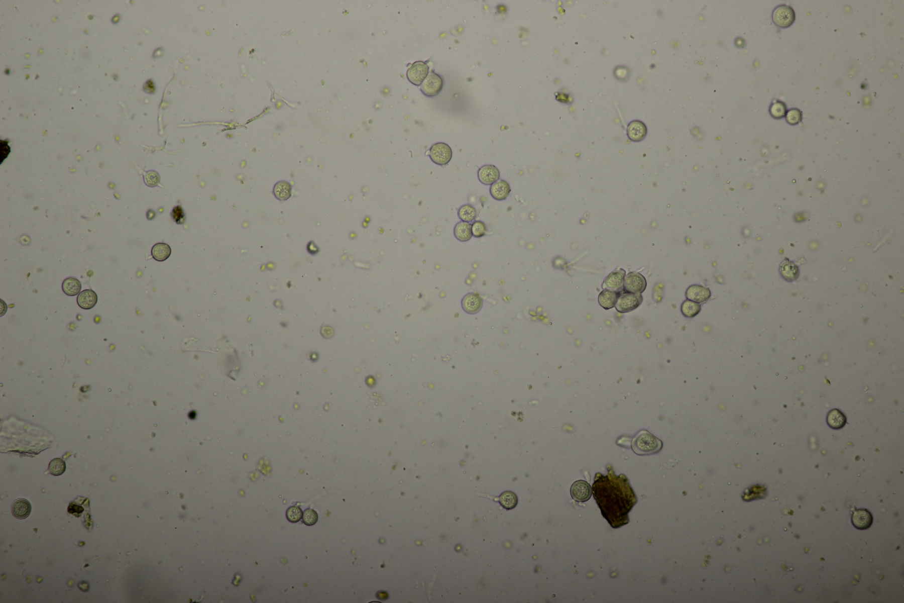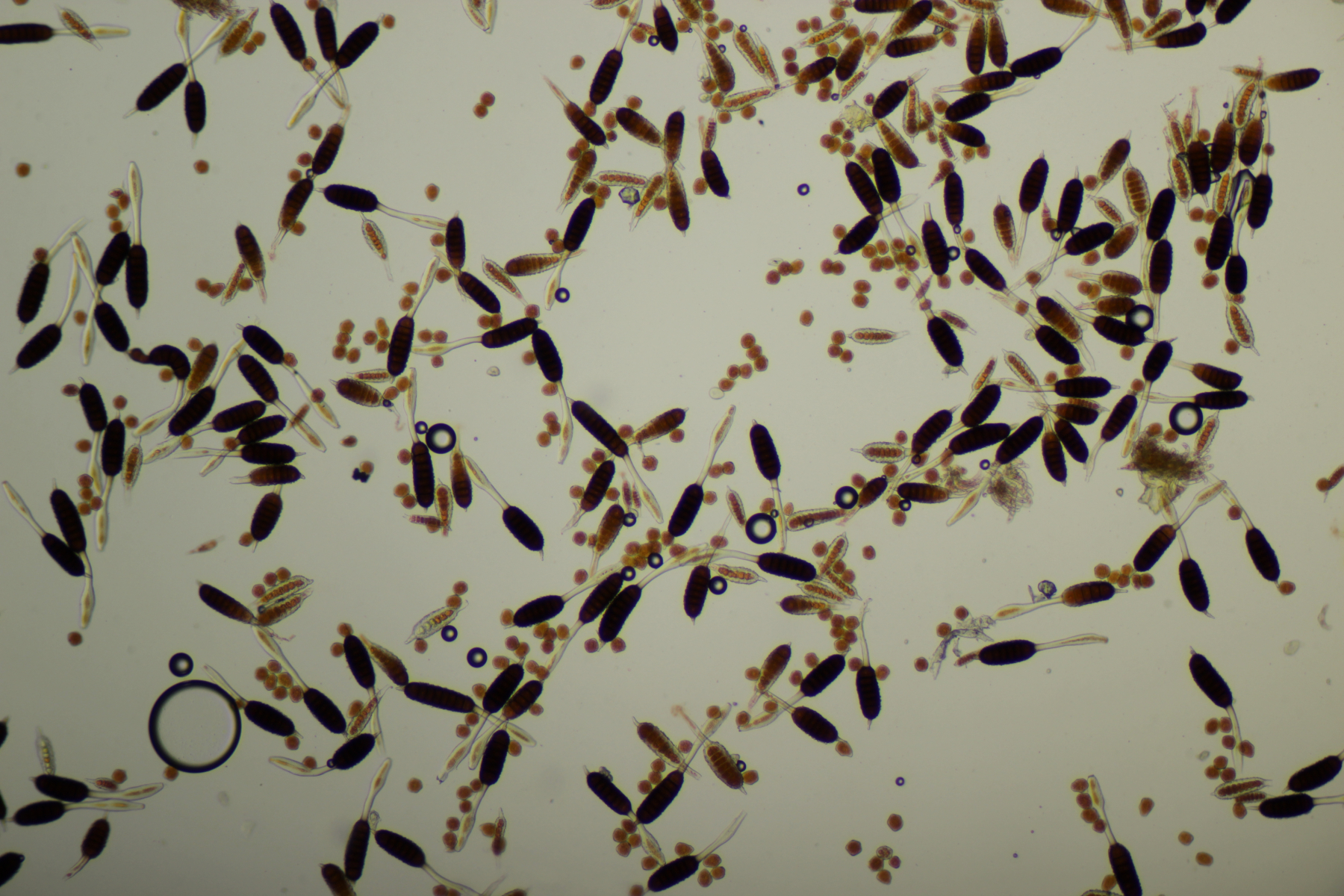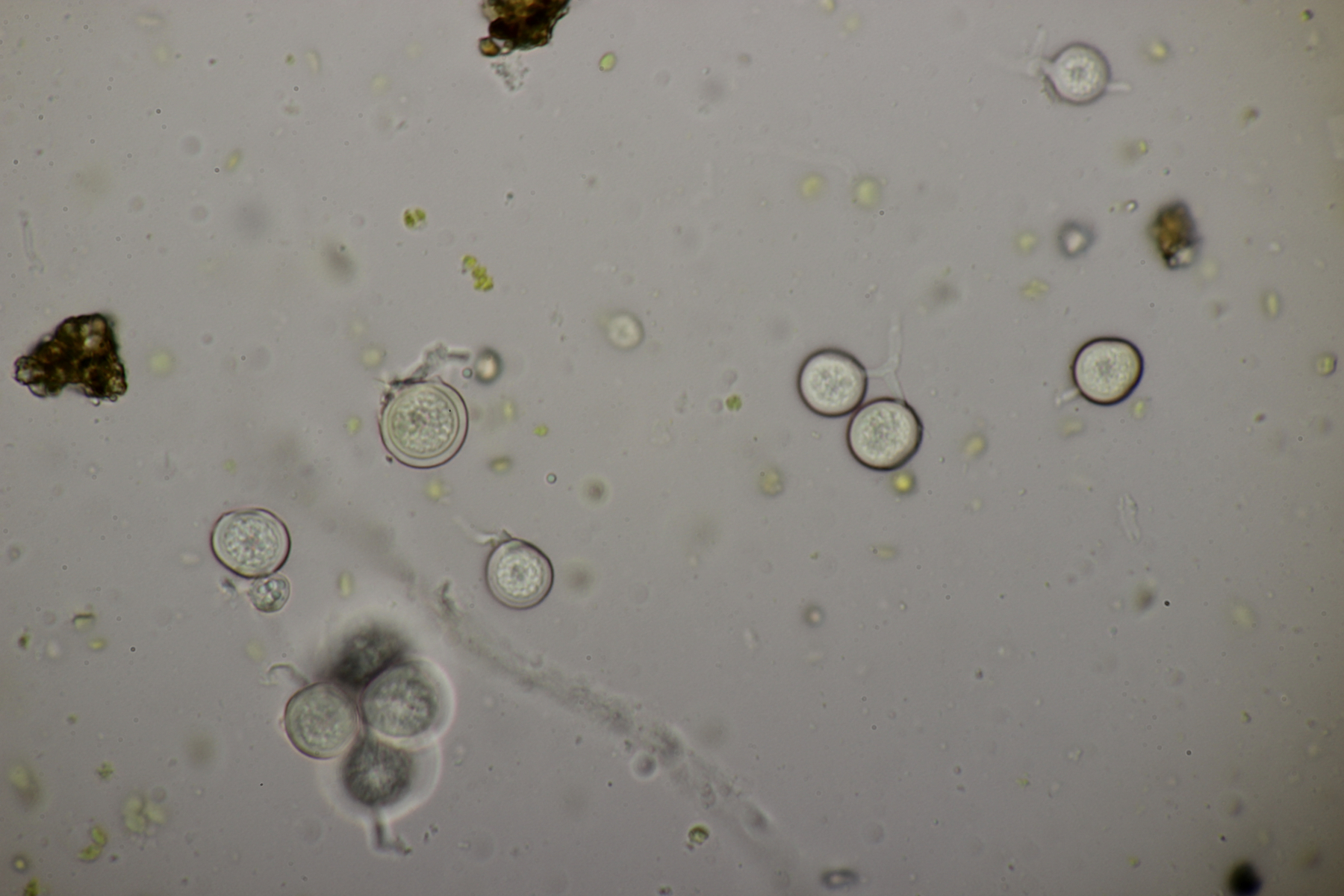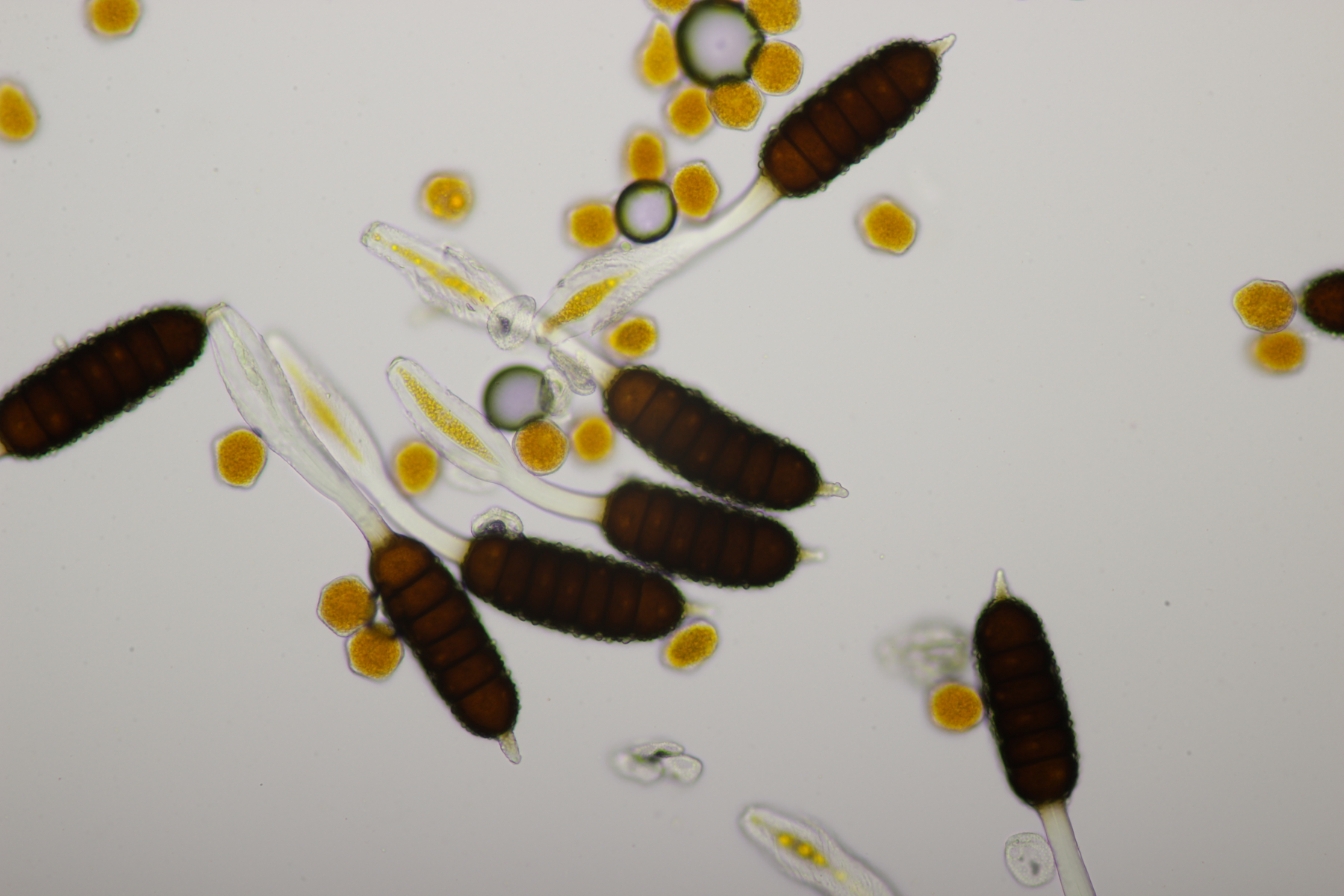 Die berühmten Rhizomorphen in KOH 3%. Wie man sieht, sieht man nicht viel. Skeletthyphen sind aber wohl erkennbar