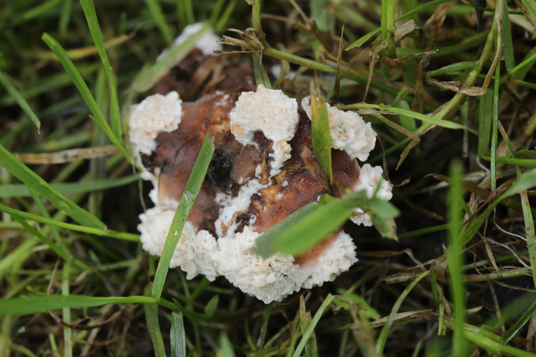 4. Abortiporus biennis nach einer Rasenmäherbehandlung