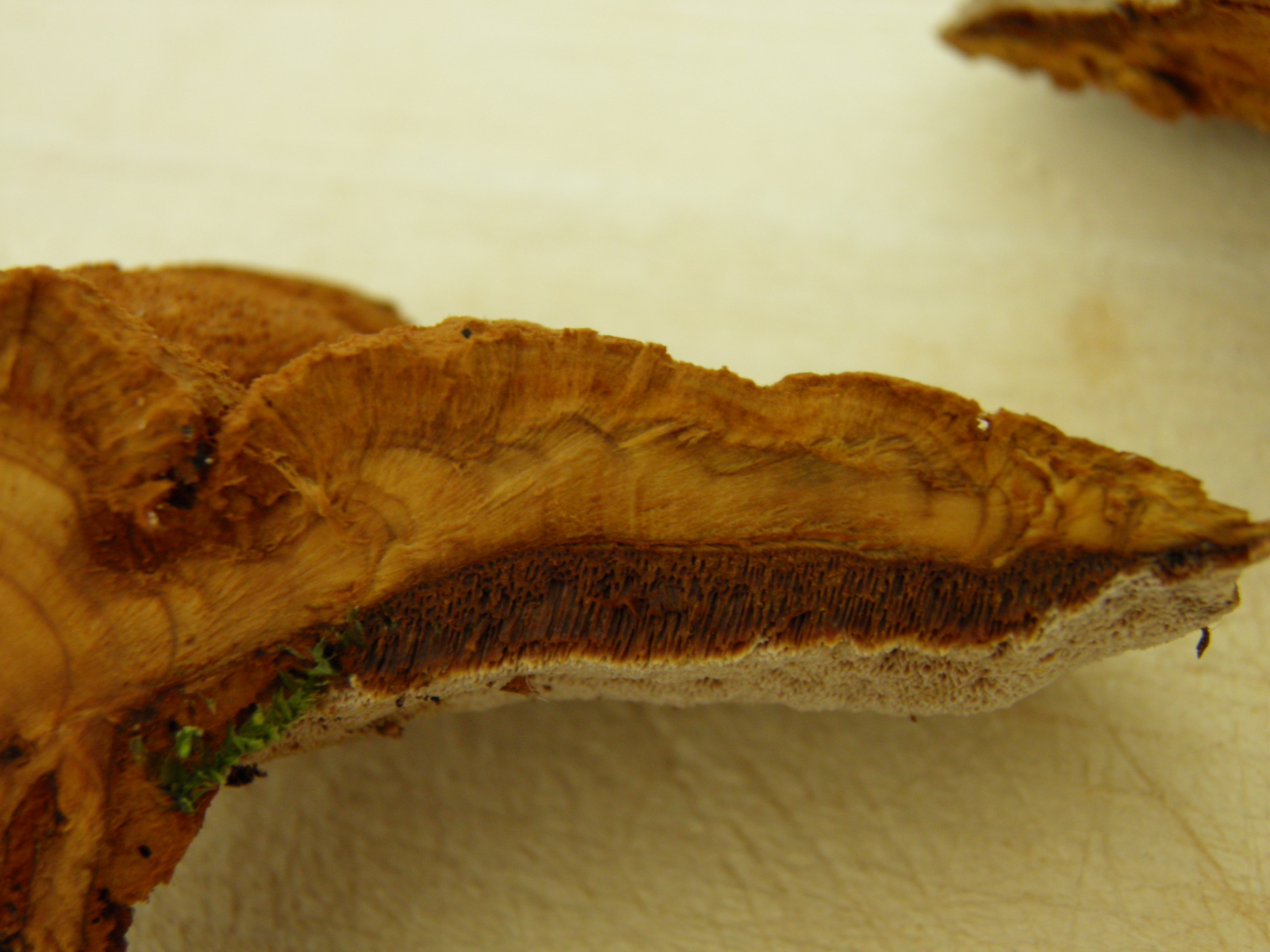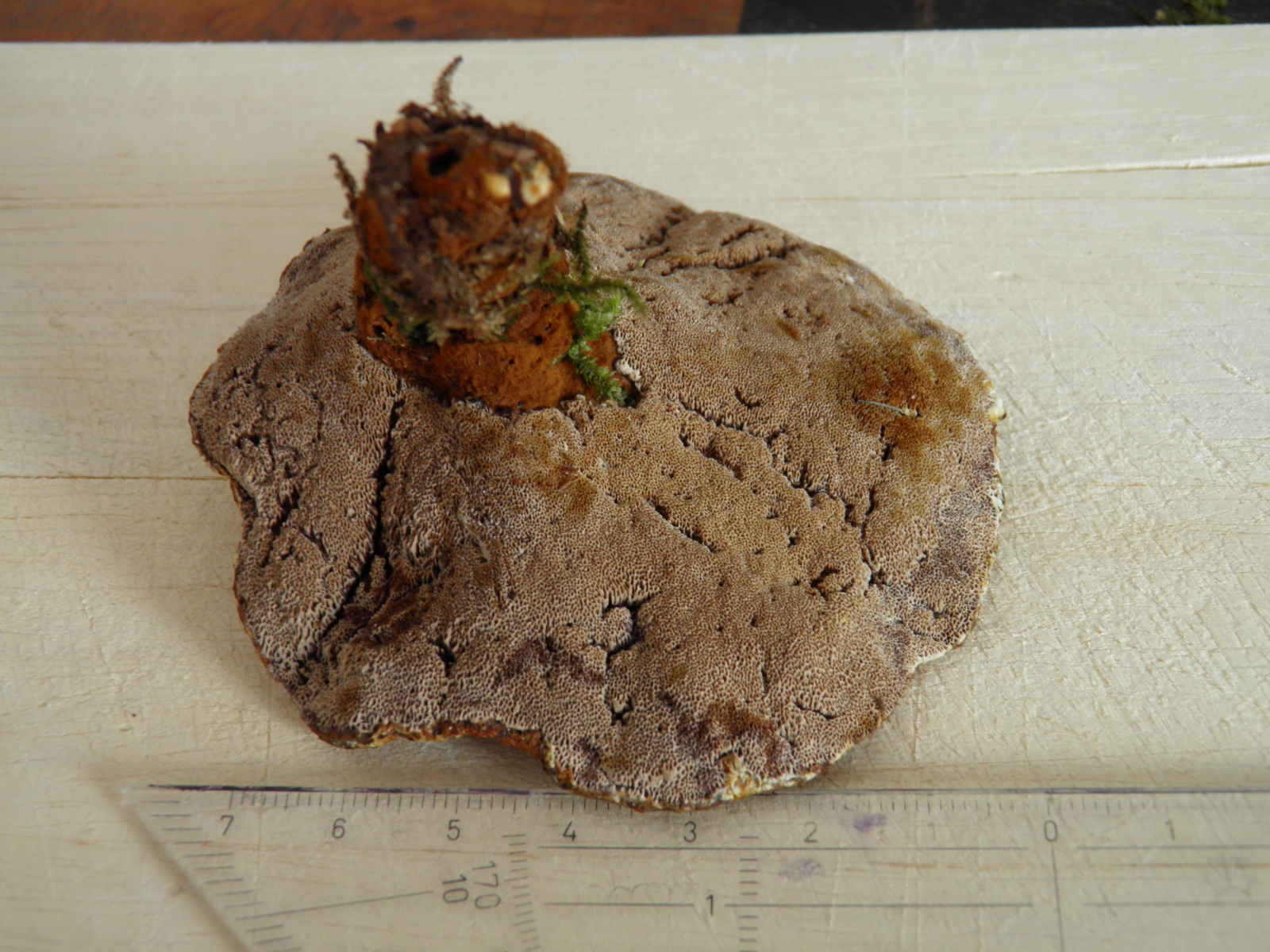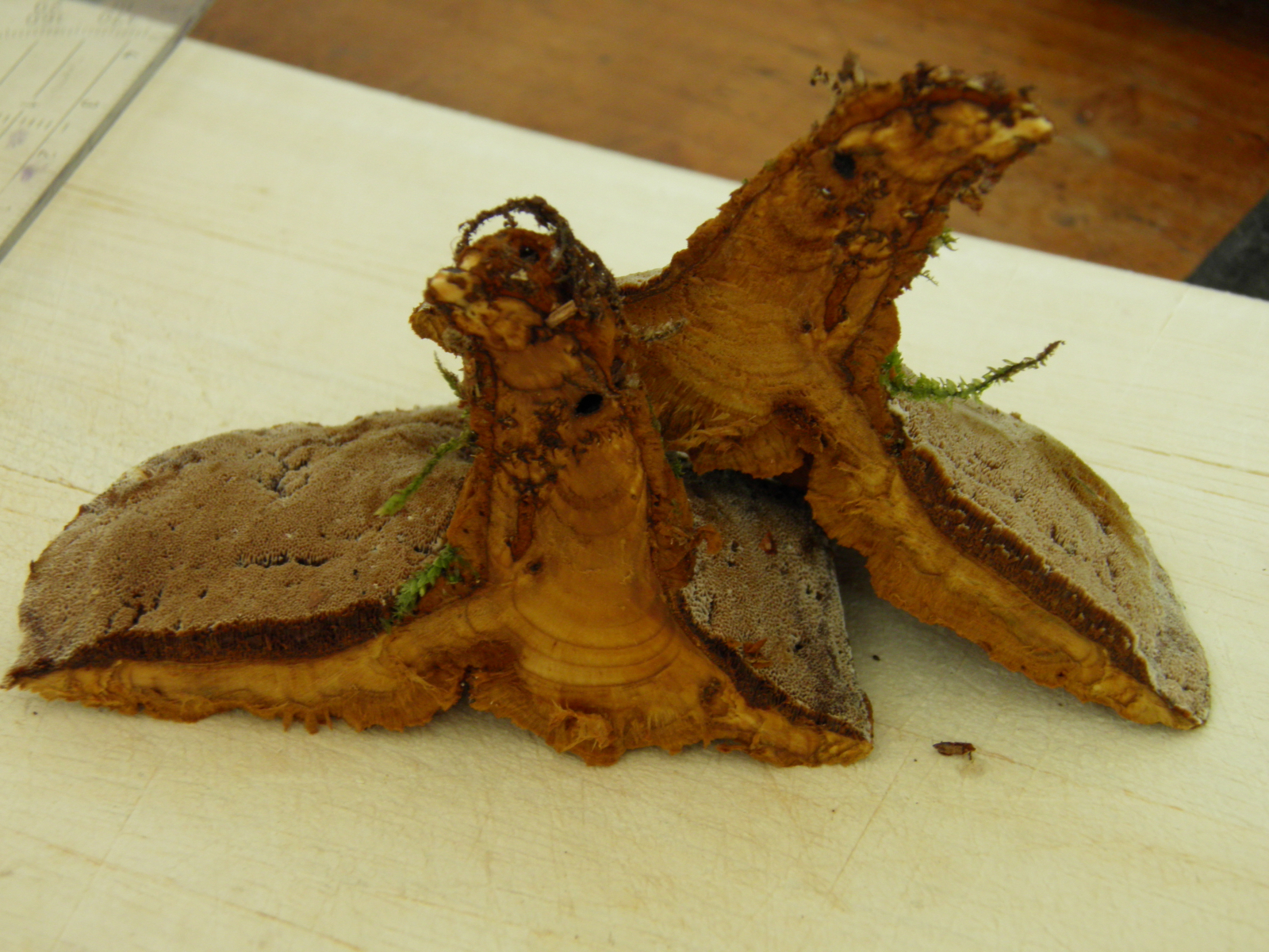 Makroskopisch werde ich nicht so recht schlau aus dem Schwammerl, vor allem die korkig/zähe Konsistenz kenne ich so nicht von Kiefernbraunporlingen (was bei mir halt nicht viel bedeutet....)