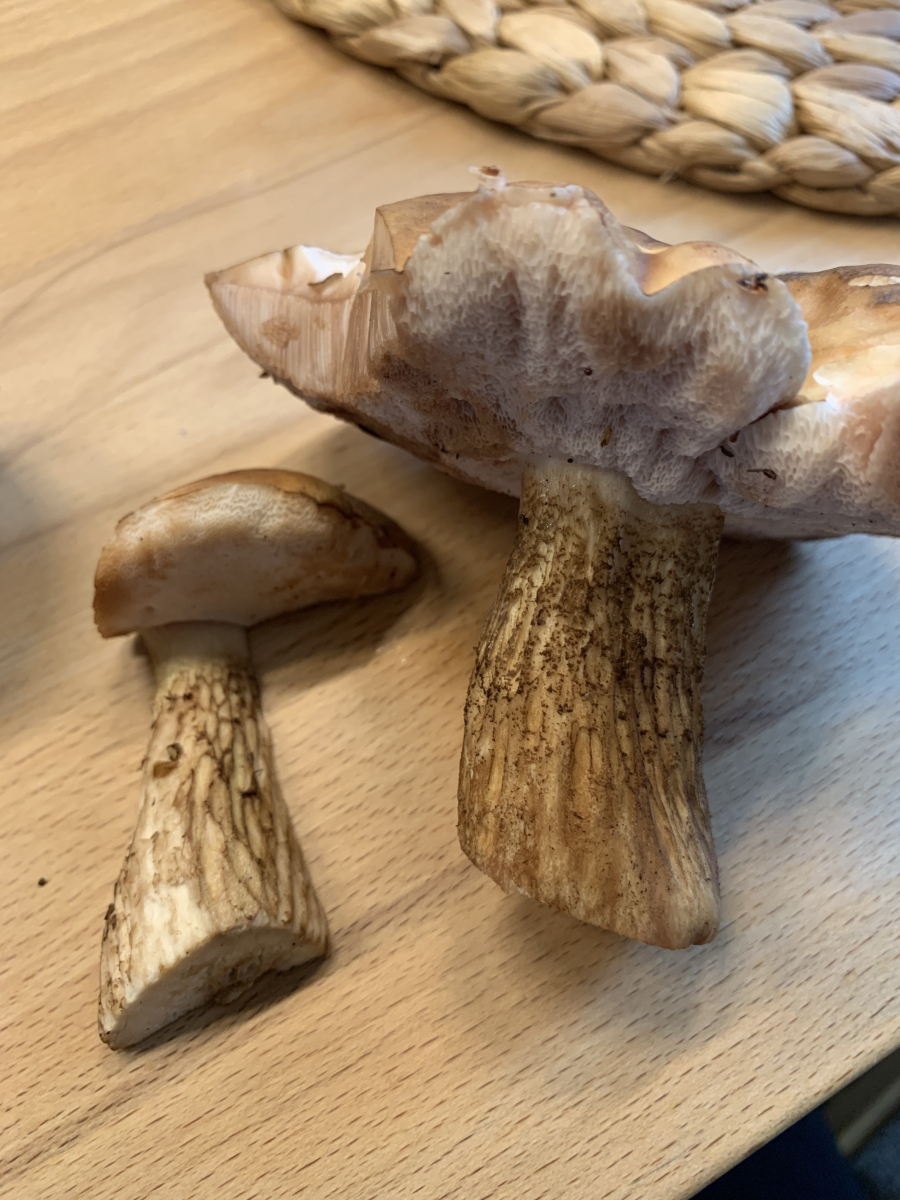 Ich wäre da eher bei einem der Raustielröhrlinge (Leccinum spec.).Ist allerdings anhand dieser Bilder eher vage und eine exakte Artbestimmung nicht möglich.