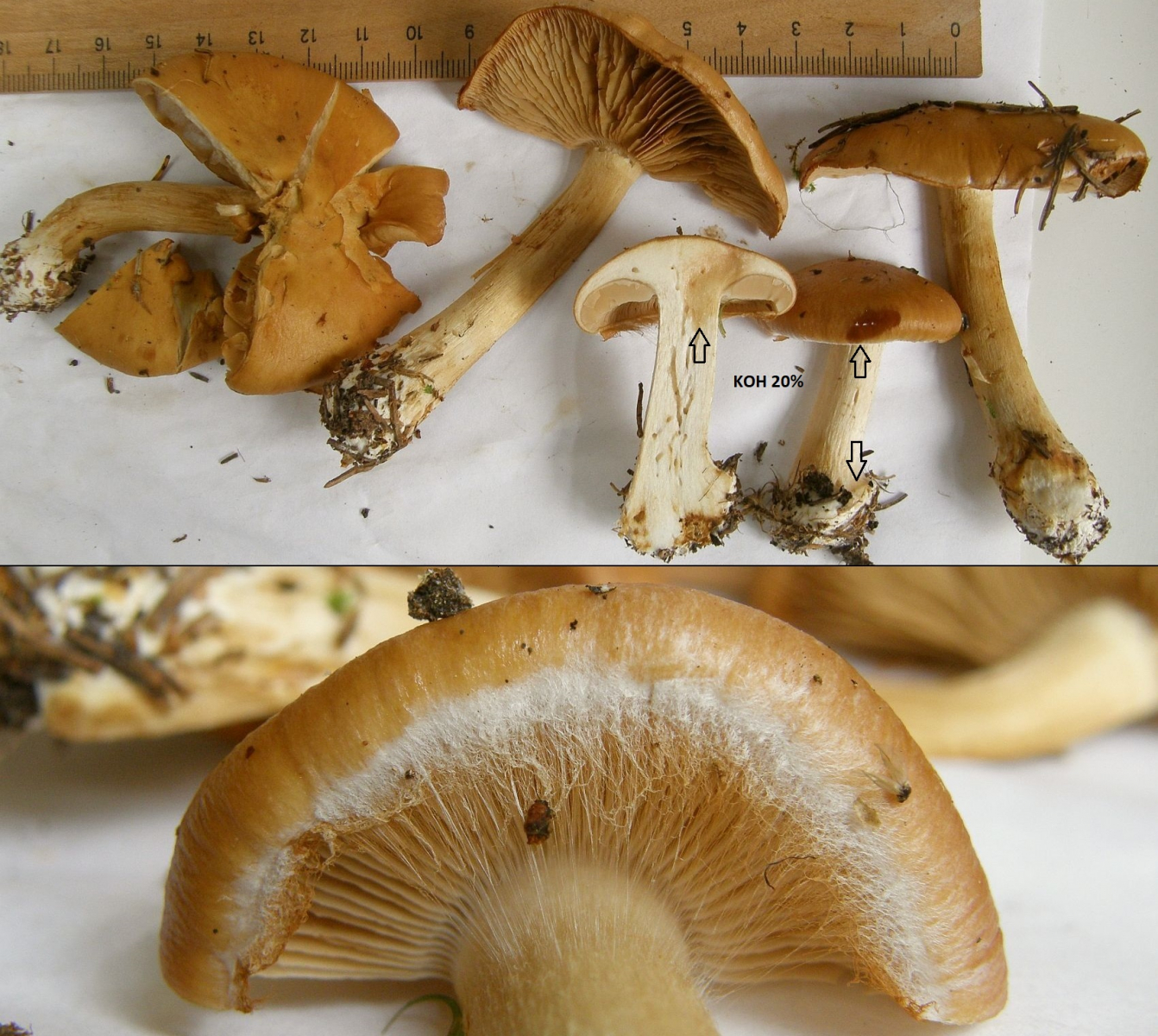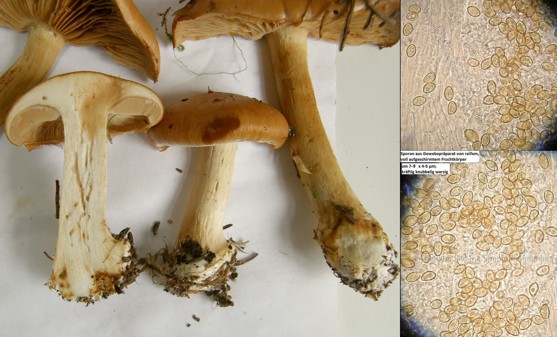 KOH 20% auf Hutrand (dort etwas dunkler, aber ohne Farbveränderung), Hutfleisch und Stielbasis negativ; Lamellenschneide gesägt; Stielbasis vor allem bei älteren Fruchtkörpern nur undeutlich und unvollständig gerandet; Huthaut nicht oder nicht erkennbar hygrophan; Stielbasis im Schnitt und gerubbelt mit Honiggeruch; Sporen eher klein (bis ca. 9µm, einige Ausreißer nach oben vorhanden, aber auch vereinzelte 2-sporige Basidien).
