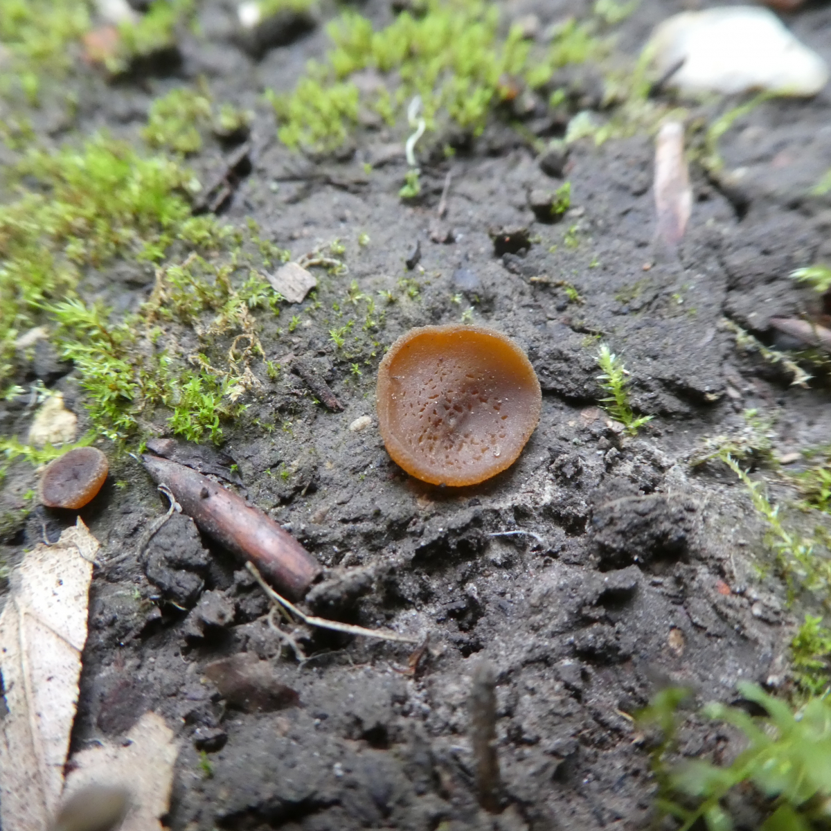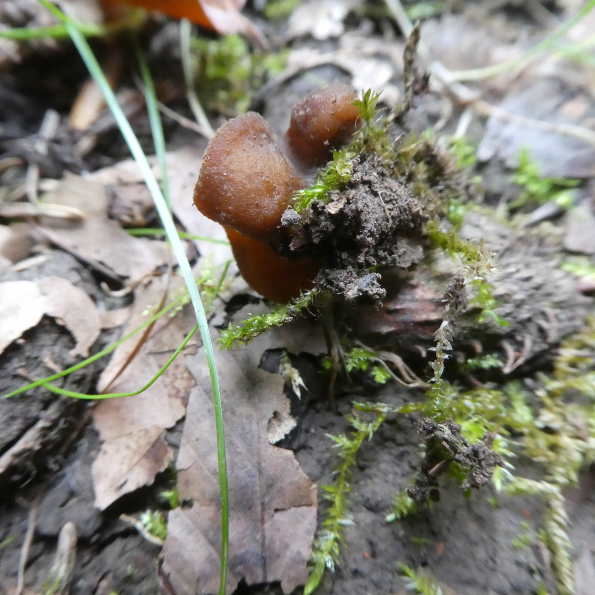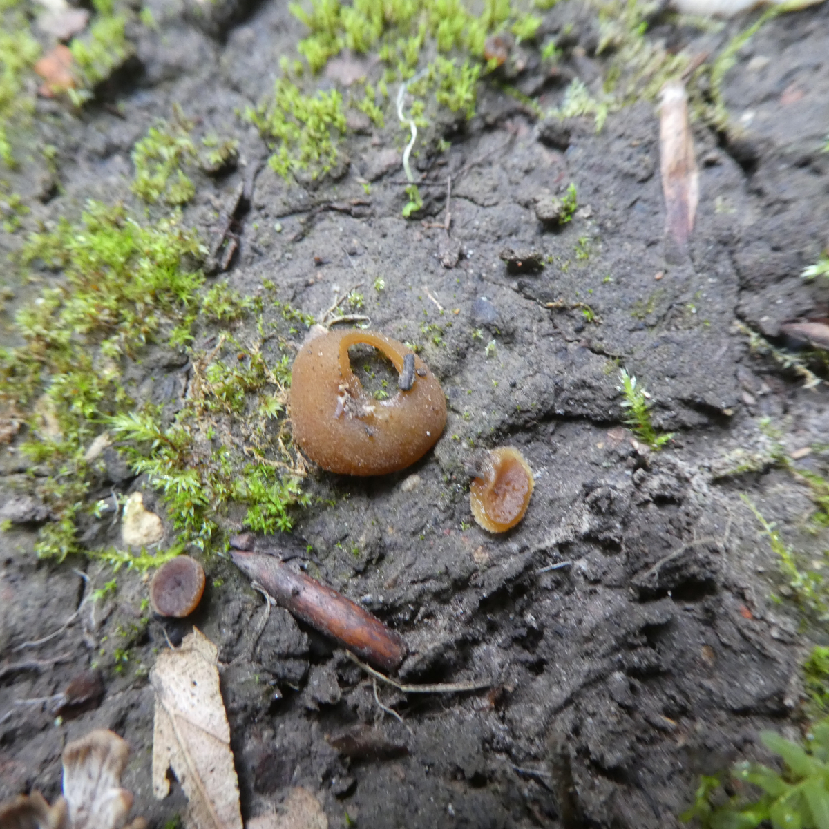 auch hier geht es mir in erster Linie einfach um eine grobe Linie um eine Hilfestellung zur Handhabung. Gestern lief ich auf einem Weg auf dem man vor lauter Becherchen und Co. stellenweise kaum laufen konnte - ca. 1 km lang ein Becherchen nach dem anderen und zwar verschiedene, dazwischen verschiedene Lorcheln und Öhrlinge. Studiert habe ich unter anderem die fantastische Seite Lorchel.de und habe nun so nach und nach bei einigen Funden eine grobe Vermutung. So bei diesem nachfolgenden Pilz, bei dem ich vermute, dass es sich vielleicht auch um Peziza handeln könnte, aber die waren, bis auf den einen Pilz, so flach wie eine Scheibe ....