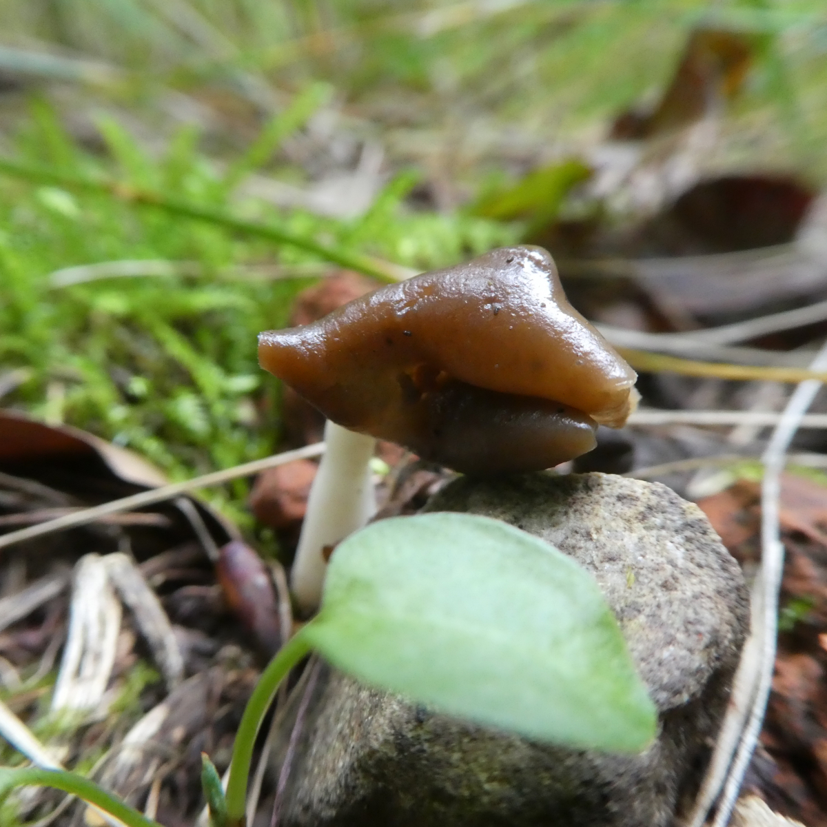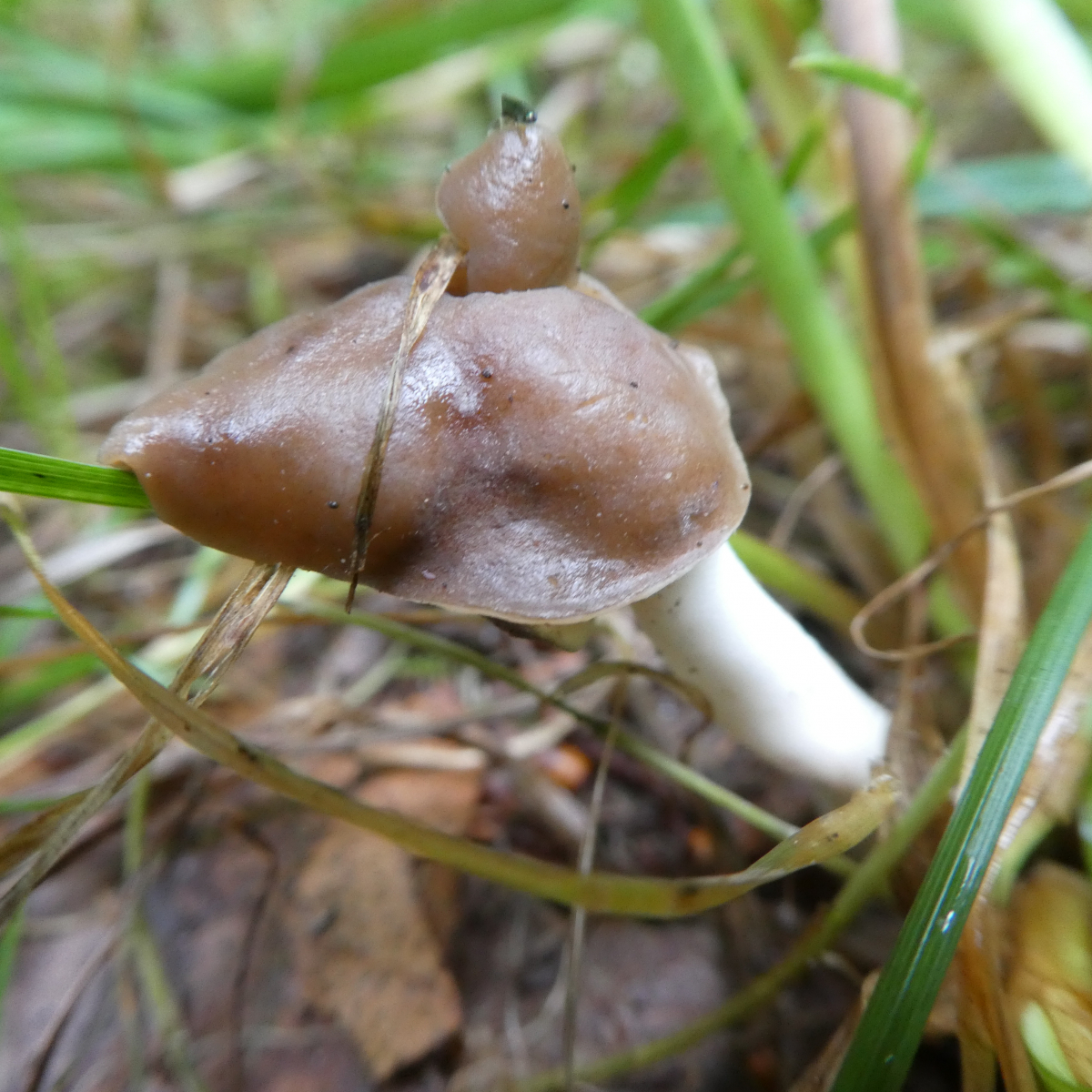 Funddaten: 07.09.2019, Altmühltal, Mischwald, mitten auf dem Weg. Durchmesser ca. 1,5 cm, Höhe ca. 4 cm, Hut nicht am Stiel angewachsen, Stiel nicht hohl.