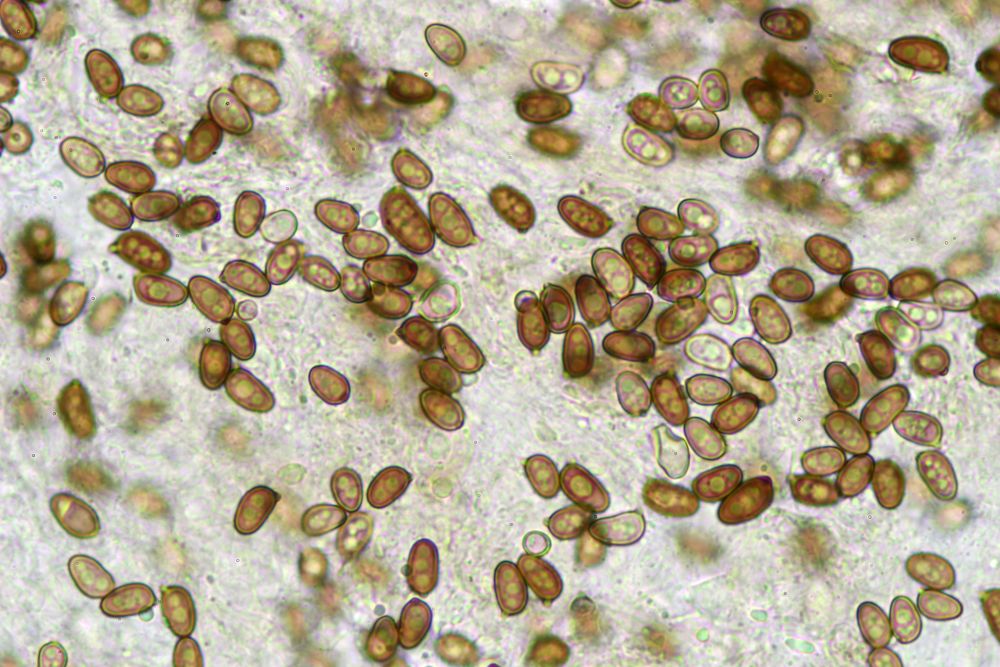 Und hier noch die Sporen, die ich als einziges Mikromerkmal fotografisch festhalten konnte: