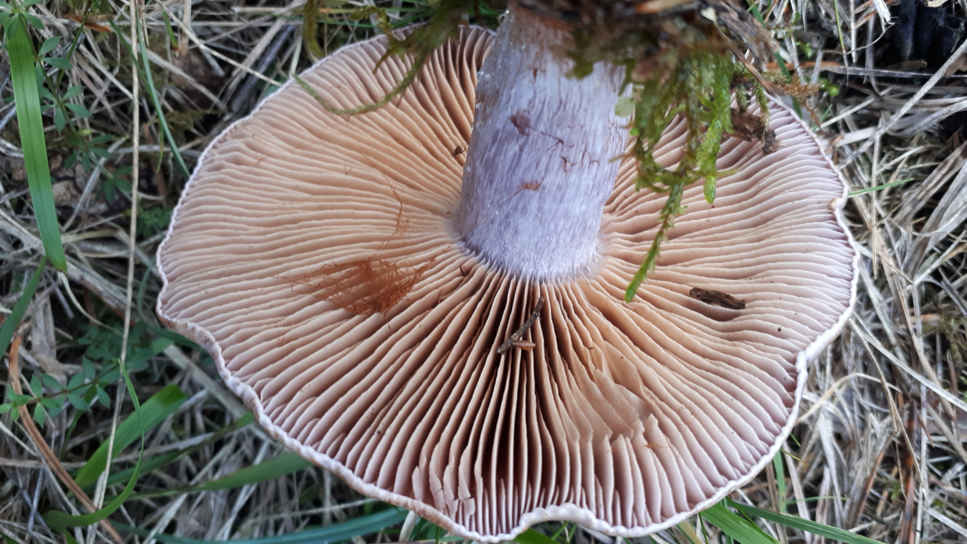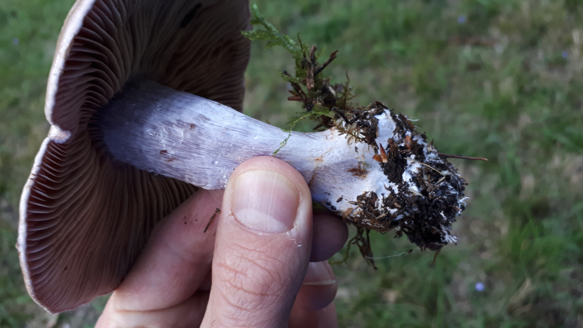 Ich habe sm Fuße einer Fichte eine Reihe von Lamellenpilzen gefunden, die mich vom Habitus her an Rötelritterlinge erinnern... was denkt ihr? Stil Lila, weiß überhauch, basis gerandet knollig , lamellen hell rost braun, vllcht leichter violettton, hut bräunlich mit Schuppen. Festfleischig... Ich tippe auf Rötelritterling, aber welcher? LEPIsta