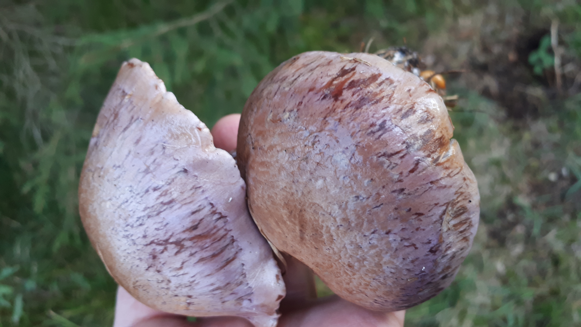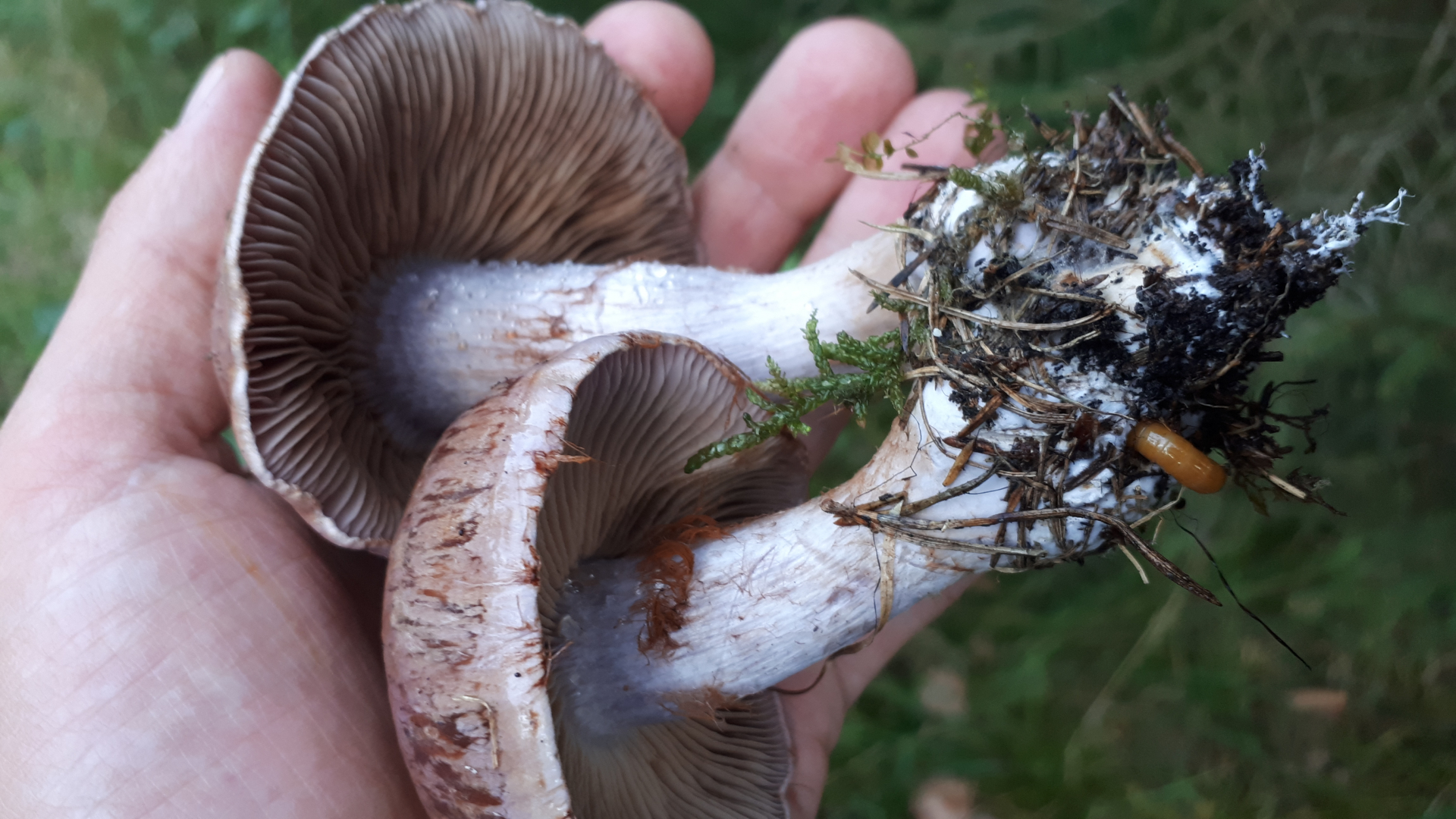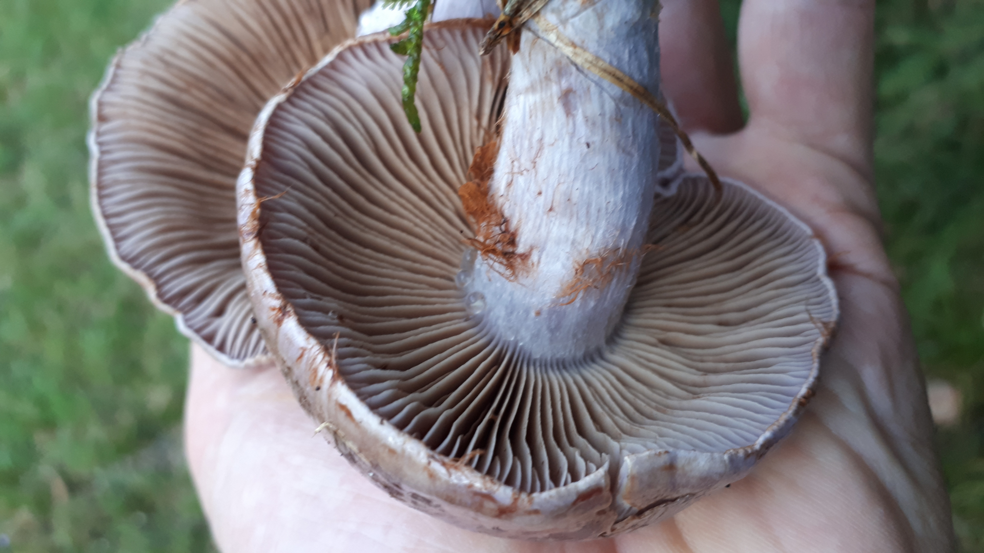 Ich habe sm Fuße einer Fichte eine Reihe von Lamellenpilzen gefunden, die mich vom Habitus her an Rötelritterlinge erinnern... was denkt ihr? Stil Lila, weiß überhauch, basis gerandet knollig , lamellen hell rost braun, vllcht leichter violettton, hut bräunlich mit Schuppen. Festfleischig... Ich tippe auf Rötelritterling, aber welcher? LEPIsta