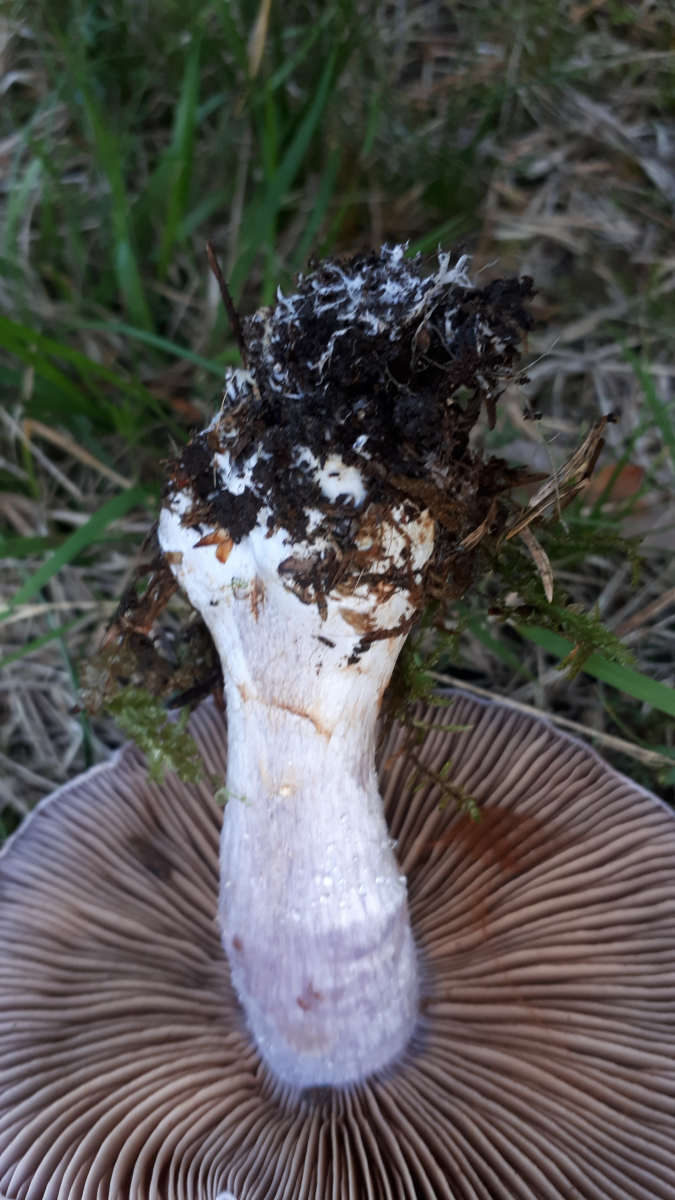 neenee, guck mal hier rein: Cortinarienwoche 2019. Da hat Harald gerade Unmengen Schleierlinge vorgestellt. Bei vielen von denen findest Du diese braunen Sporenreste am Stiel und bei vielen ist auch der feine Haarschleier noch in fast geschlossenem Zustand zu erkennen.