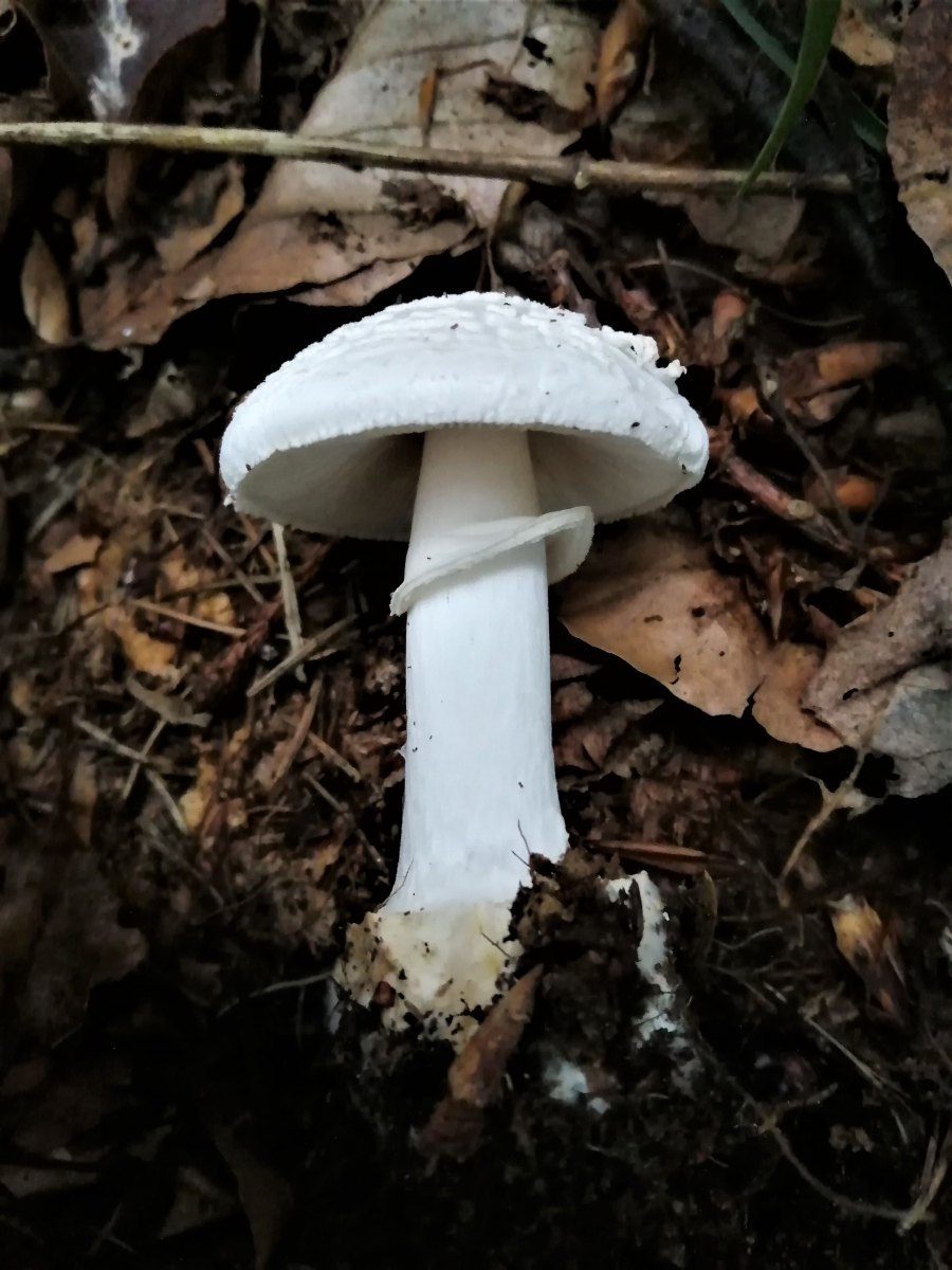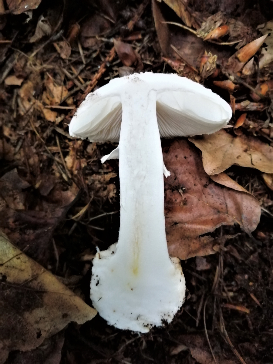 Stiel: rein weiß kurzes Stück oberhalb der stark gerandeten Knolle leicht genattert. wattig leicht beflockt. Scheide sehr kurz.